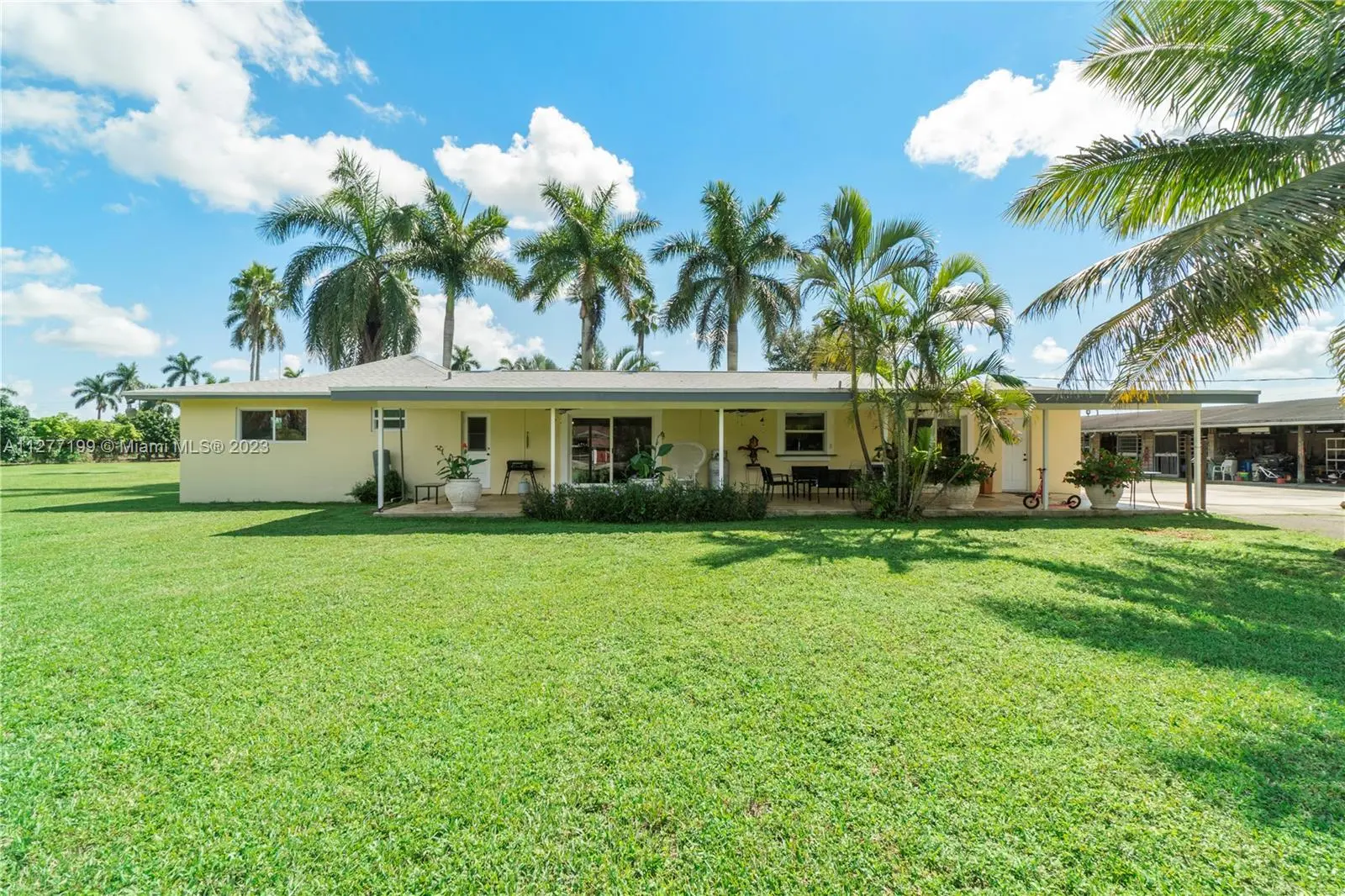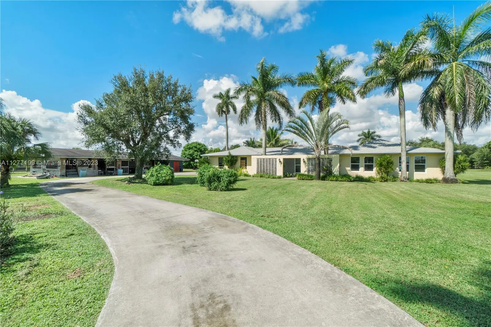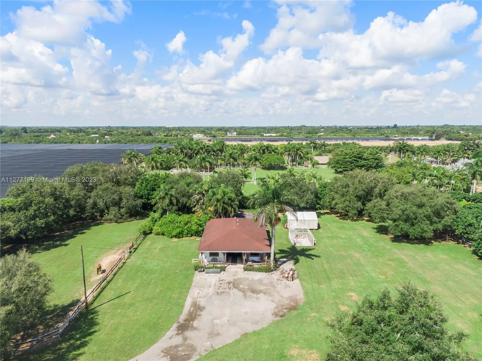 MUST SEE THIS AMAZING PEACEFUL property located on 4.73 acers in Homestead to appreciate all it has to offer. Quaint farmhouse with spectacular entrance, new roof, impact windows, large kitchen with window looking out onto the property. Many water wells located throughout the property. Horse stables that can bring income or can be used to store vintage cars. Income producing exotic trees such as Jack Fruit tree, Curry tree, Old Spice tree, Mamey tree and more. Additionally, a separate guest/in law quarters that can be used for income. Must see in person to appreciate all the beauty of this property. Make this your home! Great place to raise a family, create an event venue or a new development. BY APPOINTMENT ONLY.