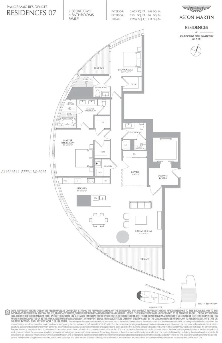 Welcome to Aston Martin Residences Unit 1607 – This stunning 2-bed, 3-bath + den corner residence offers 10-ft ceilings, a private elevator, and foyer. The open floor plan features an enclosed den/office, Bulthaup cabinetry, Gaggenau appliances, and Thassos marble floors. Floor-to-ceiling windows and two terraces showcase sweeping views of Biscayne Bay, the Miami River, and Brickell skyline. The master suite boasts two walk-in closets, a soaking tub, and a rain shower. One assigned parking space (valet available). Residents enjoy 40,000+ sq. ft. of world-class amenities, including a fitness center, spa, infinity pool, business center, private theaters, and more—steps from Brickell’s dining, shopping, and nightlife.