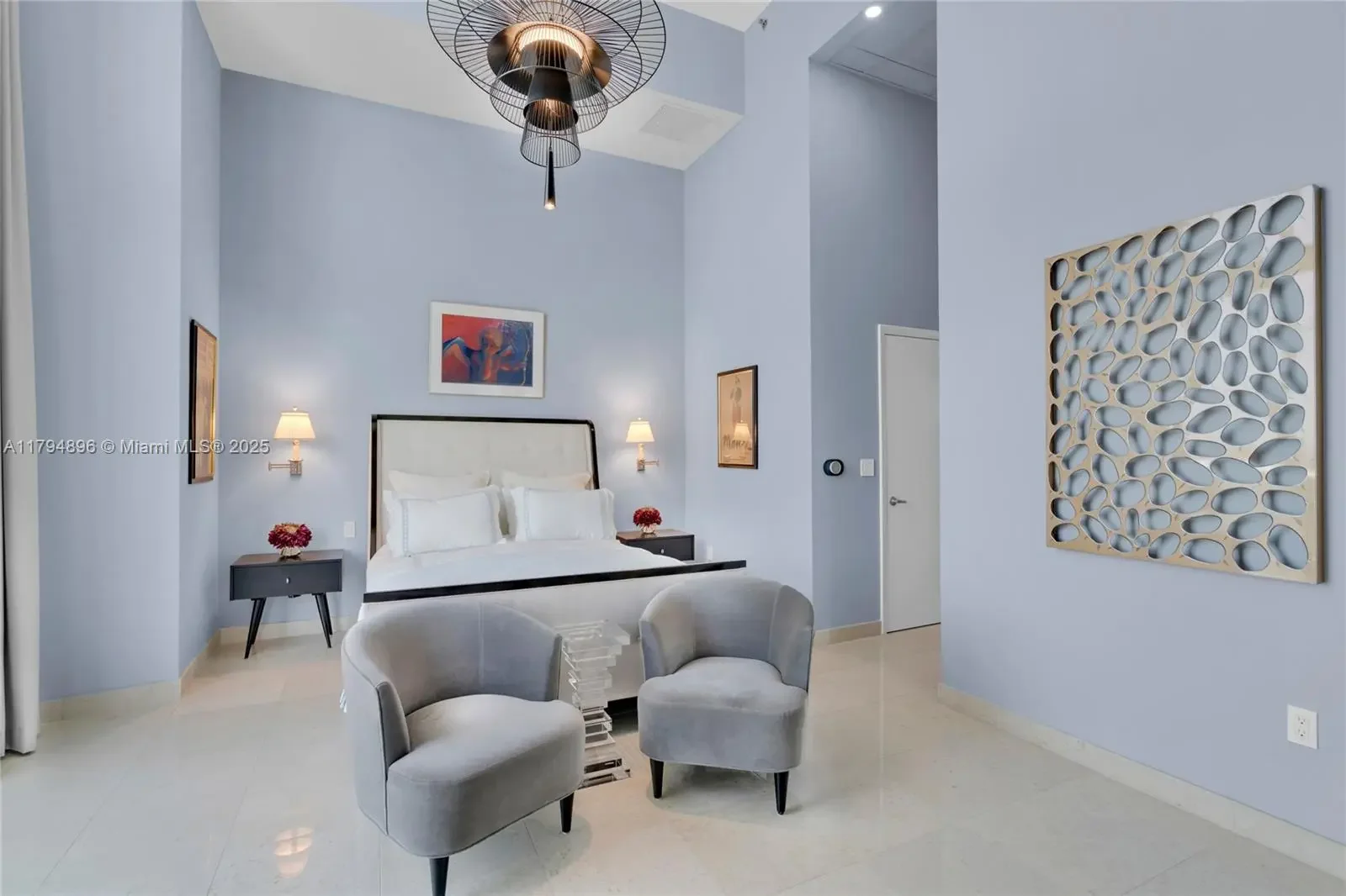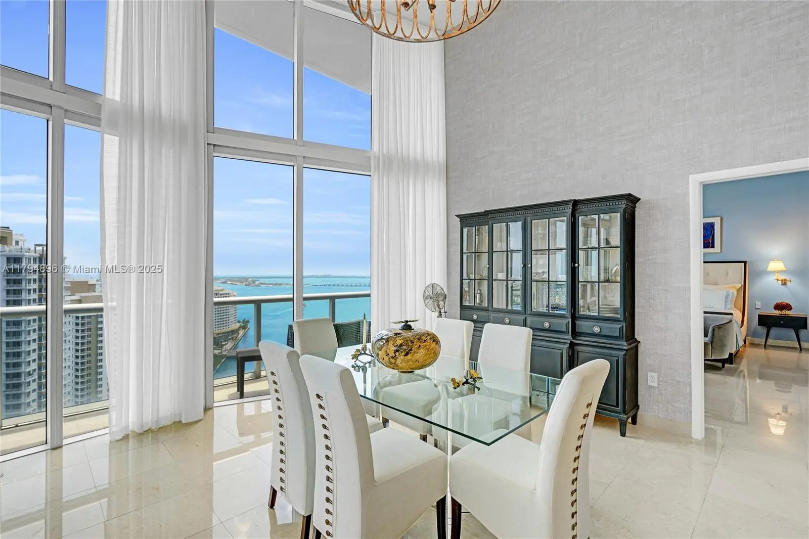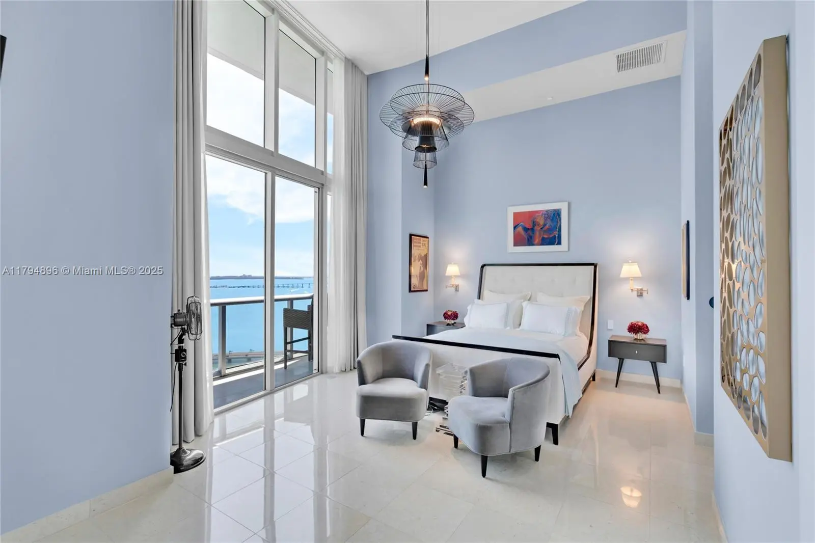 Experience breathtaking panoramic views of the ocean and Biscayne Bay from almost every room in this sophisticated '01 line residence at Icon Brickell, Tower I. This elegant 3-bed, 2.5-bath home offers 2,044 sq ft of refined living space, complemented by a spacious 250 sq ft balcony ideal for outdoor enjoyment. Total stylish interior area measures 2,294 sq ft, featuring a double-height ceiling that enhances a sense of openness and luxury. Custom dual air conditioning ensures maximum comfort, while two adjacent parking spaces provide convenience. Furnished w/ modern designer pieces and bespoke decor, this upscale urban residence offers sophisticated living— artwork and personal belongings excluded.