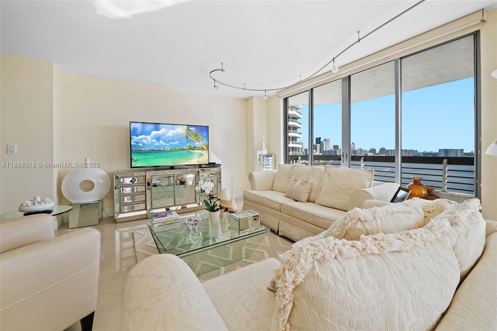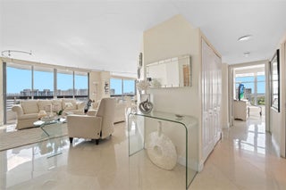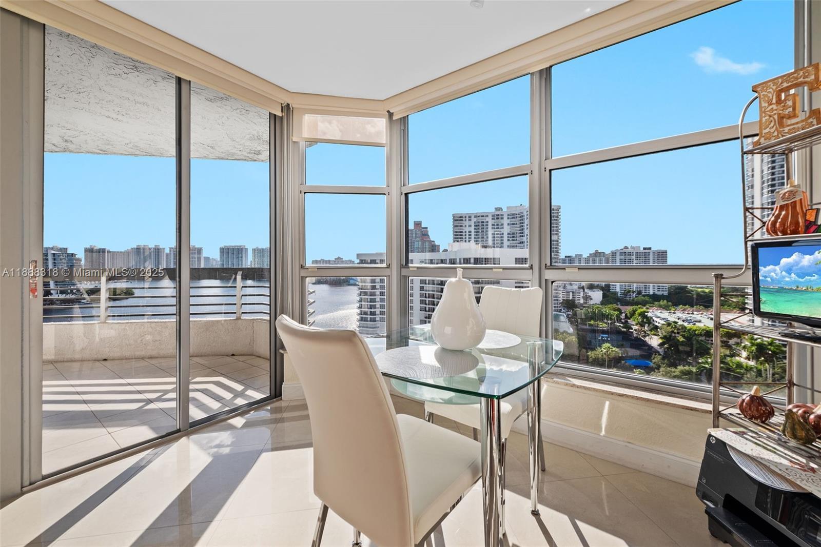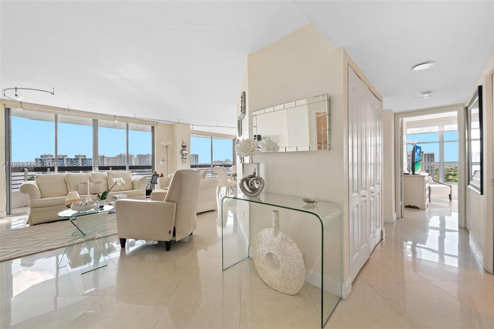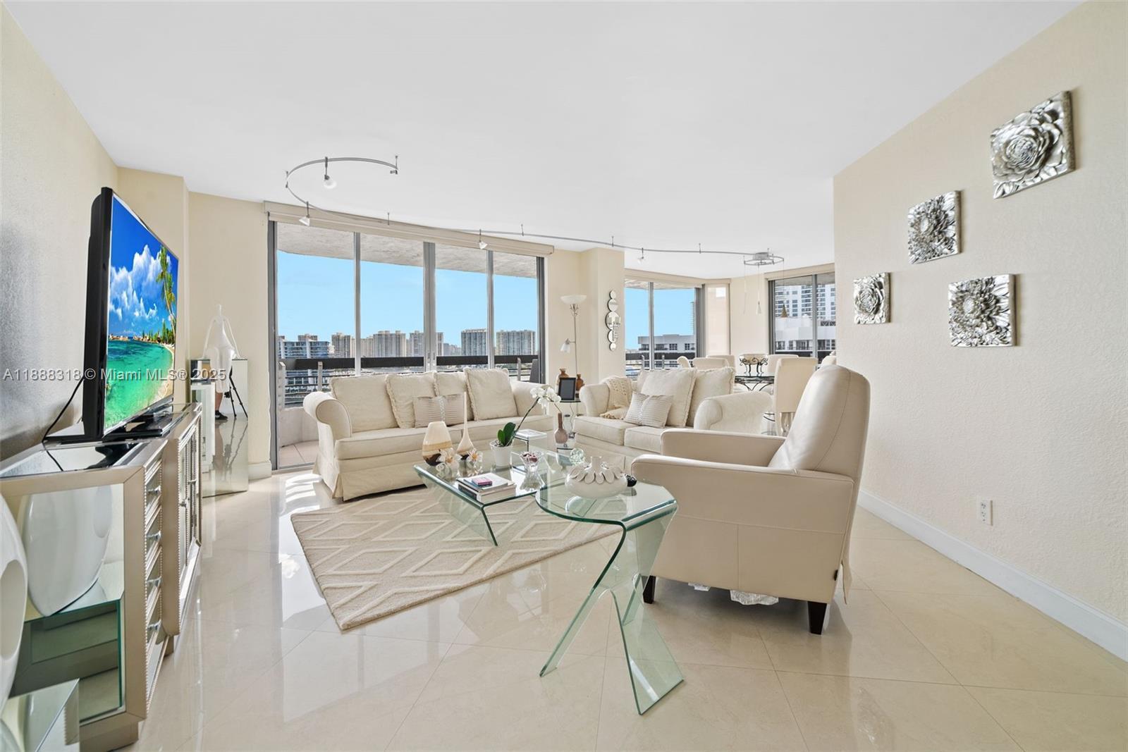 Experience breathtaking, unobstructed views of the Intracoastal Waterway and Sunny Isles Beach from this spacious 2-bedroom, 2-bath residence at Mystic Pointe Tower 200. This highly sought-after line features a wraparound balcony accessible from the living room and kitchen, offering endless natural light and stunning panoramas. The master suite includes a generous walk-in closet and electrical blinds, also found in the living room. Kitchen cabinetry is in excellent condition, ready to move in or upgrade to your taste. Enjoy resort-style living with valet service, assigned covered parking, pool, fitness center, tennis courts, and 24-hour security. An unbeatable lifestyle in Aventura, minutes from beaches, Aventura Mall, and fine dining. Easy to show.