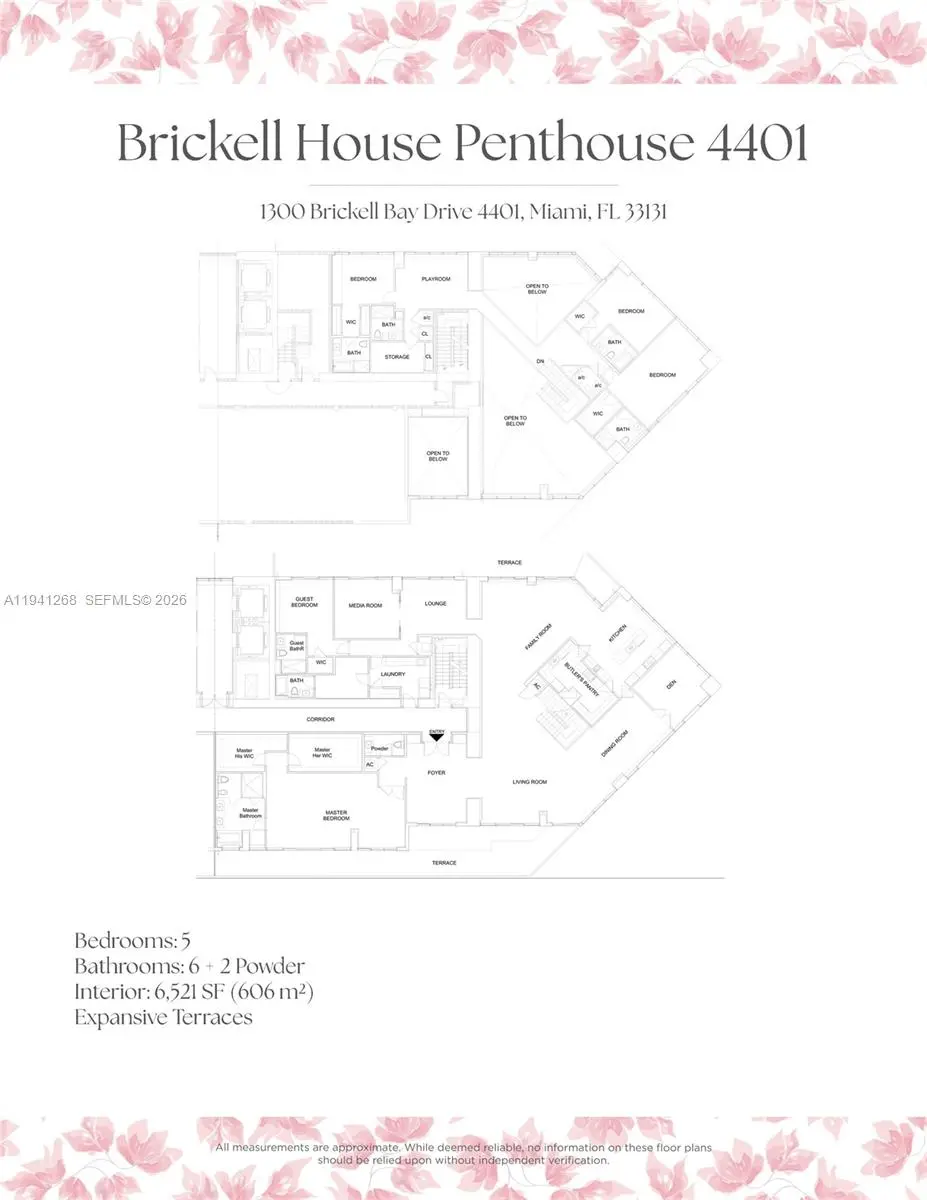 EXQUISITELY REDESIGNED TWO-STORY PENTHOUSE BY TOGU DESIGN & MASTERFULLY EXECUTED BY SABAL LUXURY BUILDER IN THE HEART OF BRICKELL! Encompassing 6,521 SF of Interiors this Smart Home wrapped in Bay & City Views offers 5 Bedrooms + 6 Baths + 2 Powder Rooms w/Office, Gym & Theater. Soaring 20-foot Ceilings & Floor-to-Ceiling Impact Glass w/sweeping Water Views. Rich Black Walnut Flooring throughout. Residence features Open-Concept Chef’s Kitchen w/premium appliances + a Separate Prep Kitchen. Expansive Primary Suite w/Oversized Spa-like Bath & Custom California Closets. State-of-the-Art Savant Automation System. Building Amenities include Rooftop Pool & Sundeck, 50FT Lap Pool, Owner’s Lounge, Fitness Center. Located in the Epicenter of Brickell w/World-Class Dining, Shopping + Nightlife.