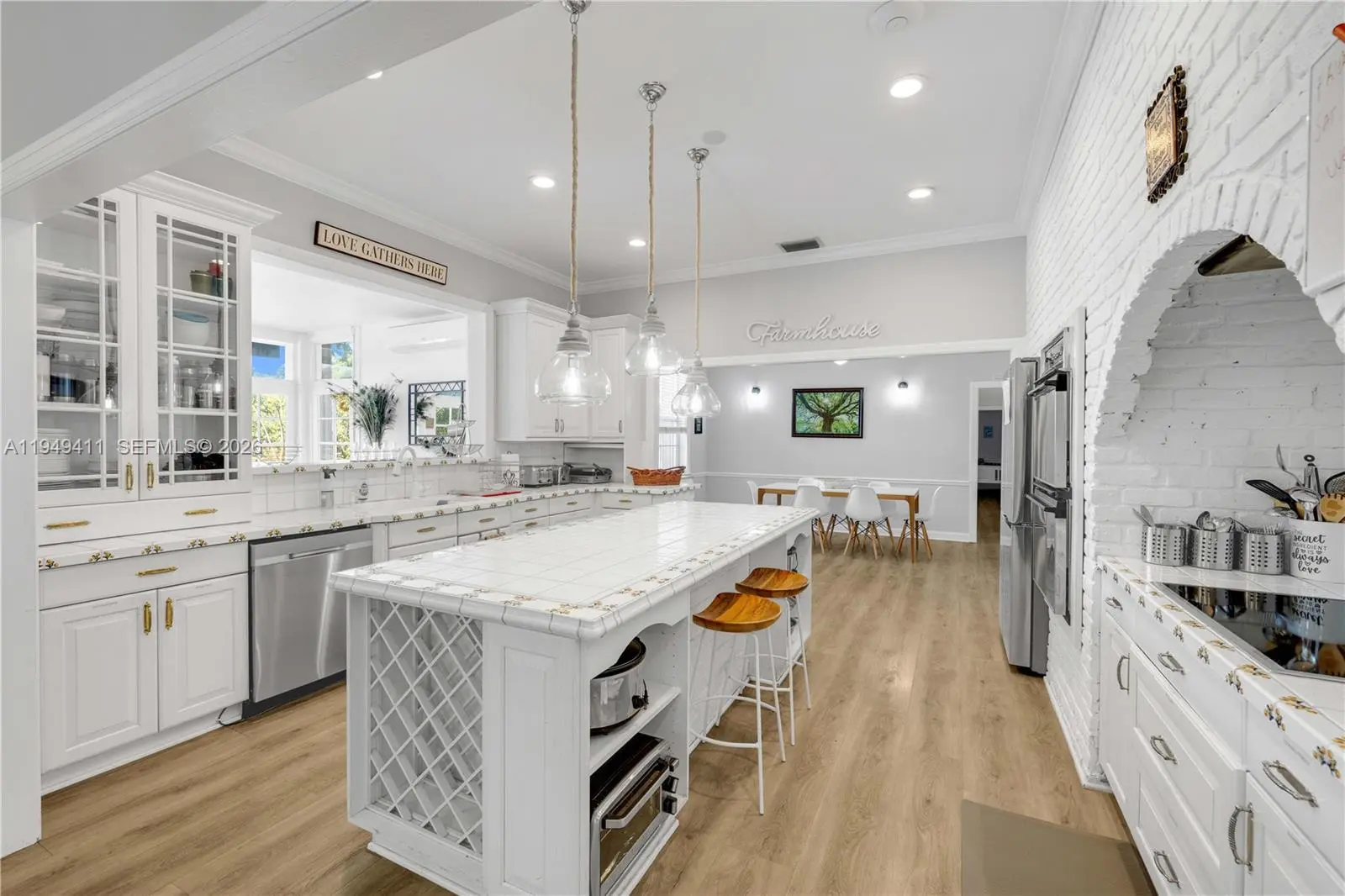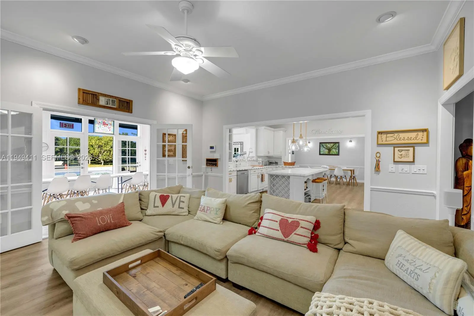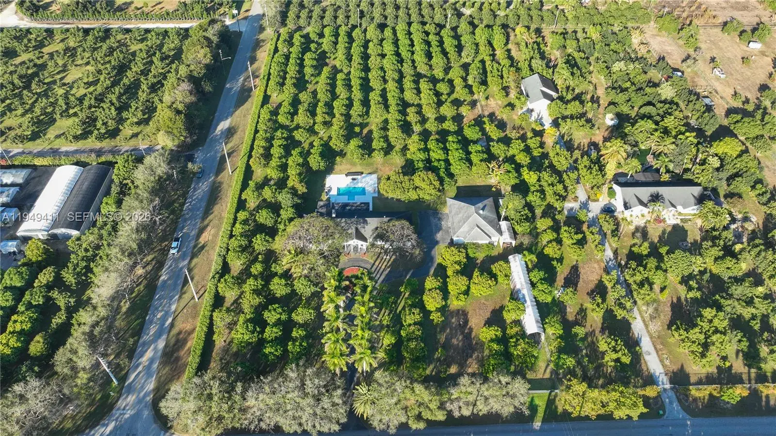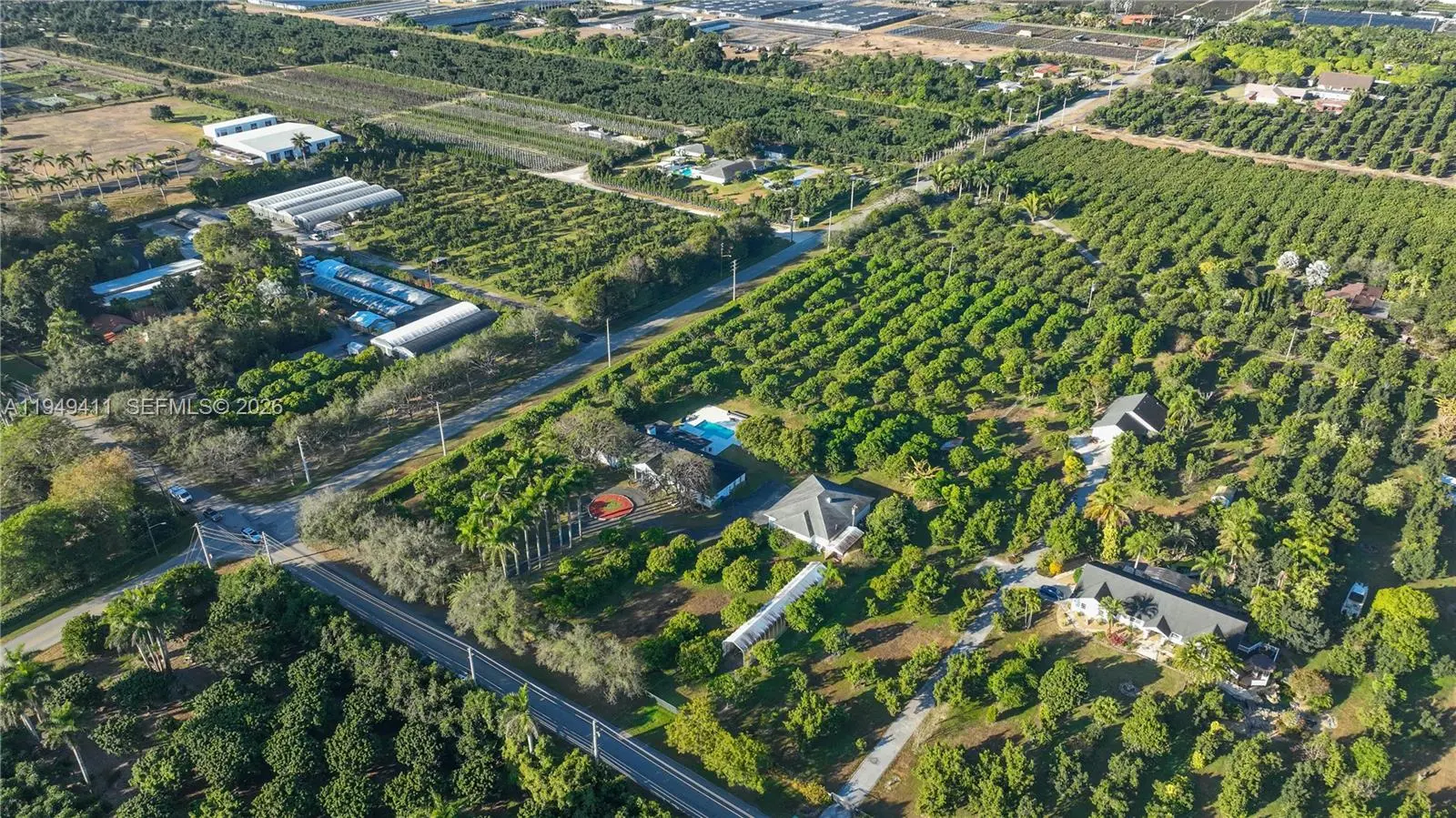 Beautiful gated Estate on over4 acres in prime Redland, just north of RF Orchids. RoyalPalm-lined driveway leads to a grand entrance. Over 7 thousand sf compound offering a privacy and tranquility only 35 minutes south of Downtown Miami. Features include private living room, formal dining room, breakfast nook, family room with Chicago brick fireplace, Florida room, large bedrooms, and attached 2 car garage. Detached A/C workshop/building with open espace, closet and 2 fully remodeled bathrooms - ideal for events, gatherings, or flexible use. Fully working Mango Farm with over 300 mature trees with Diesel irrigation system and additional drip system. Private showings by appointment only.