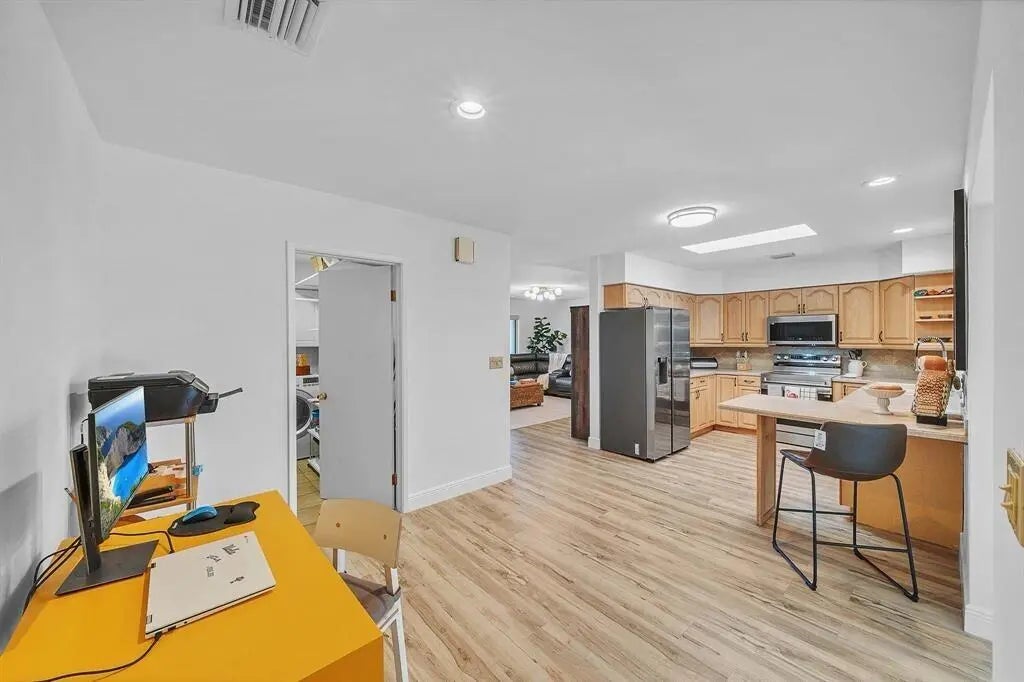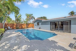 Coral Ridge Isles Unicorn: NO HOA, 8 minutes to the beach, 100% impact windows and doors, newer barrel tile roof, and a gorgeous renovated pool with new deck. Fully updated and move-in ready with new floors, recessed lighting, zero popcorn ceilings, custom window treatments, and fresh interior and exterior paint. Split-bedroom layout offers a private primary suite with walk-in closet plus second reach-in closet, new walk-in shower. Renovated guest bath features dual access for guests and pool convenience. Open kitchen with breakfast bar flows seamlessly into dining and living areas. Four-panel sliders create effortless indoor-outdoor living. Resurfaced circular driveway, Carport, fully fenced yard, covered patios in front and back, two extra storage rooms complete this rare find. ACT FAST