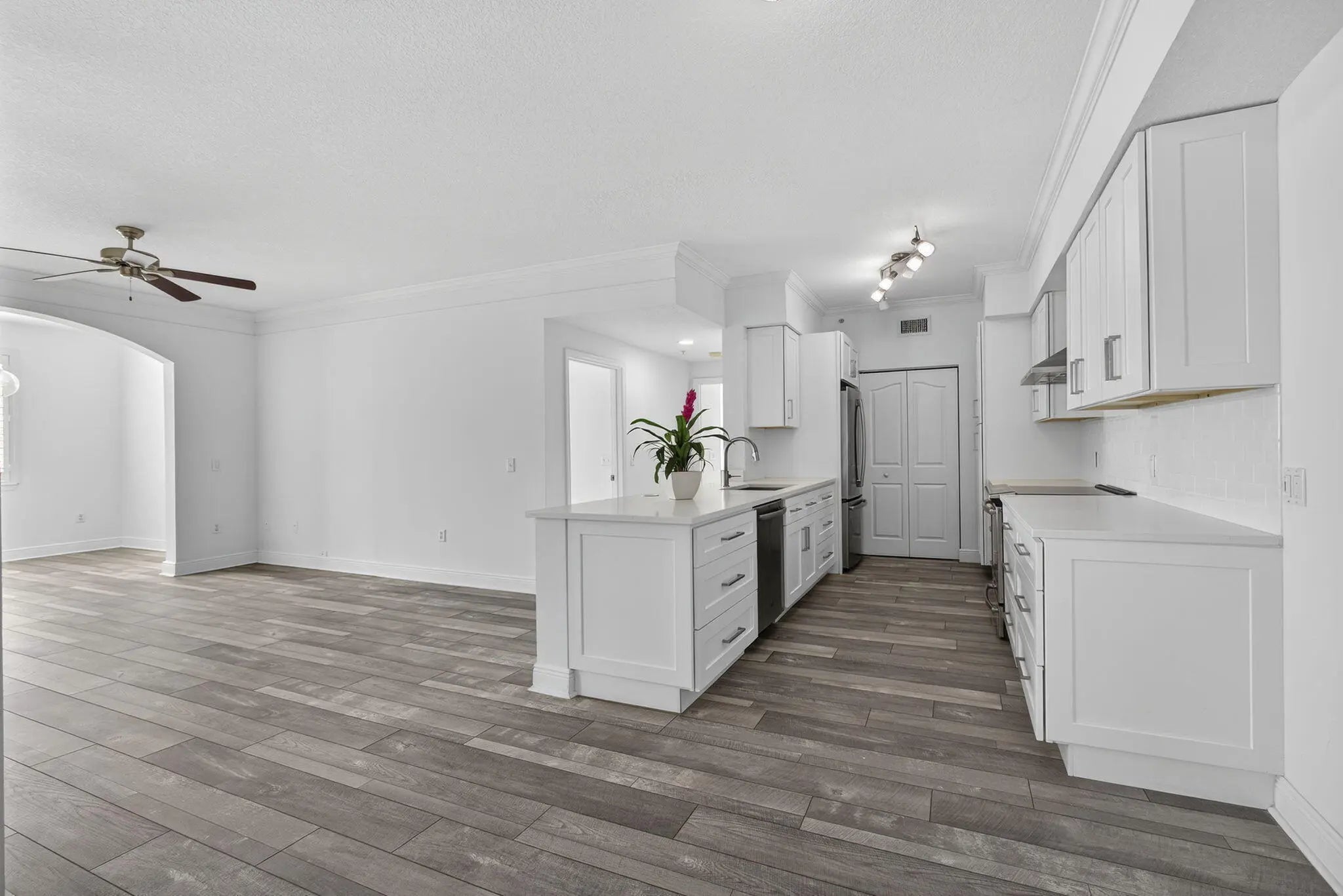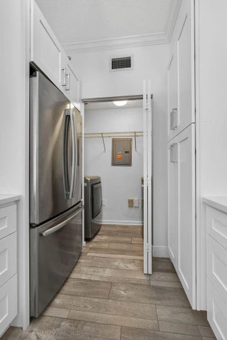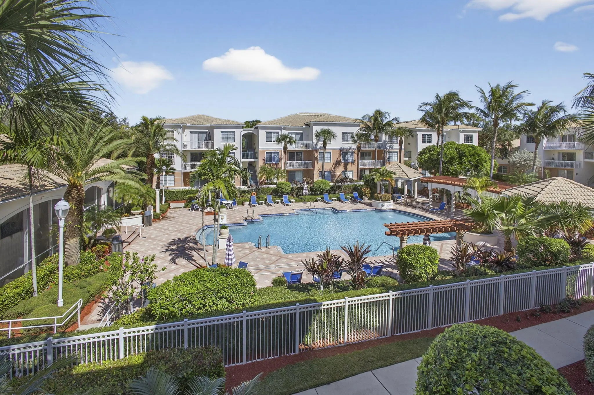 Exceptional 3 bedroom, 2 bathroom unit nestled in desirable Fiore at the Gardens. A gated, ALL age community. State-of-the art kitchen with floor to ceiling white wooden cabinets, quartz counters, waterfall island and SS appliances. Pristine condition, freshly painted, new fans, bathroom fixtures and more... INDUCTION stove. Full size newer washer and dryer. New AC Dec 2025. Eat in kitchen opens to living room and dining area. Laminate floors and plantation shutters. Spacious bedrooms, primary bedroom with ensuite bathroom. Light, bright and private with lots of storage. Minutes to the heated community pool and gym. Grade A Schools. Close to shopping, Gardens Mall, Roger Dean Stadium, FAU College, Juno and Jupiter beaches. Don't miss this one!