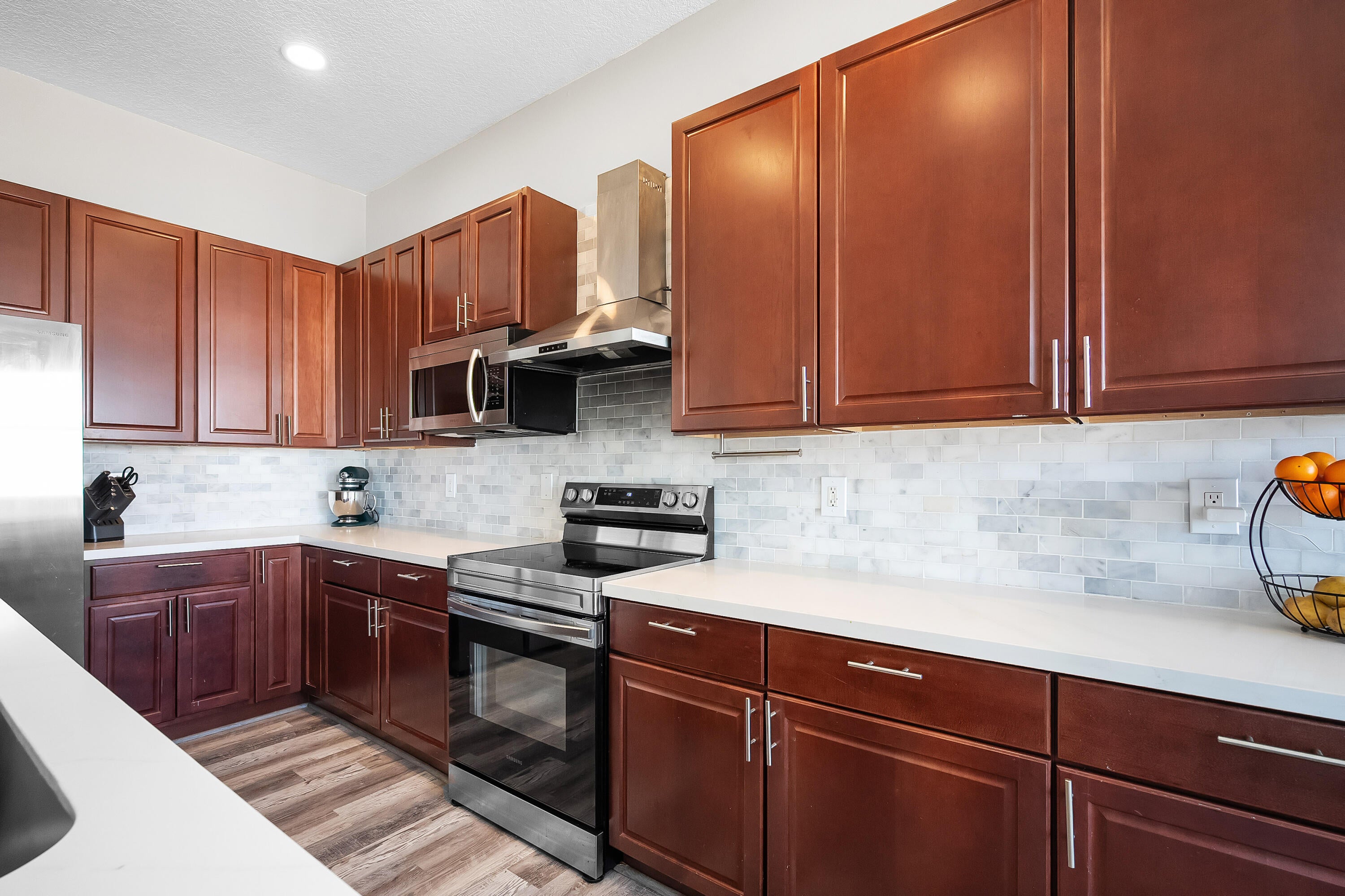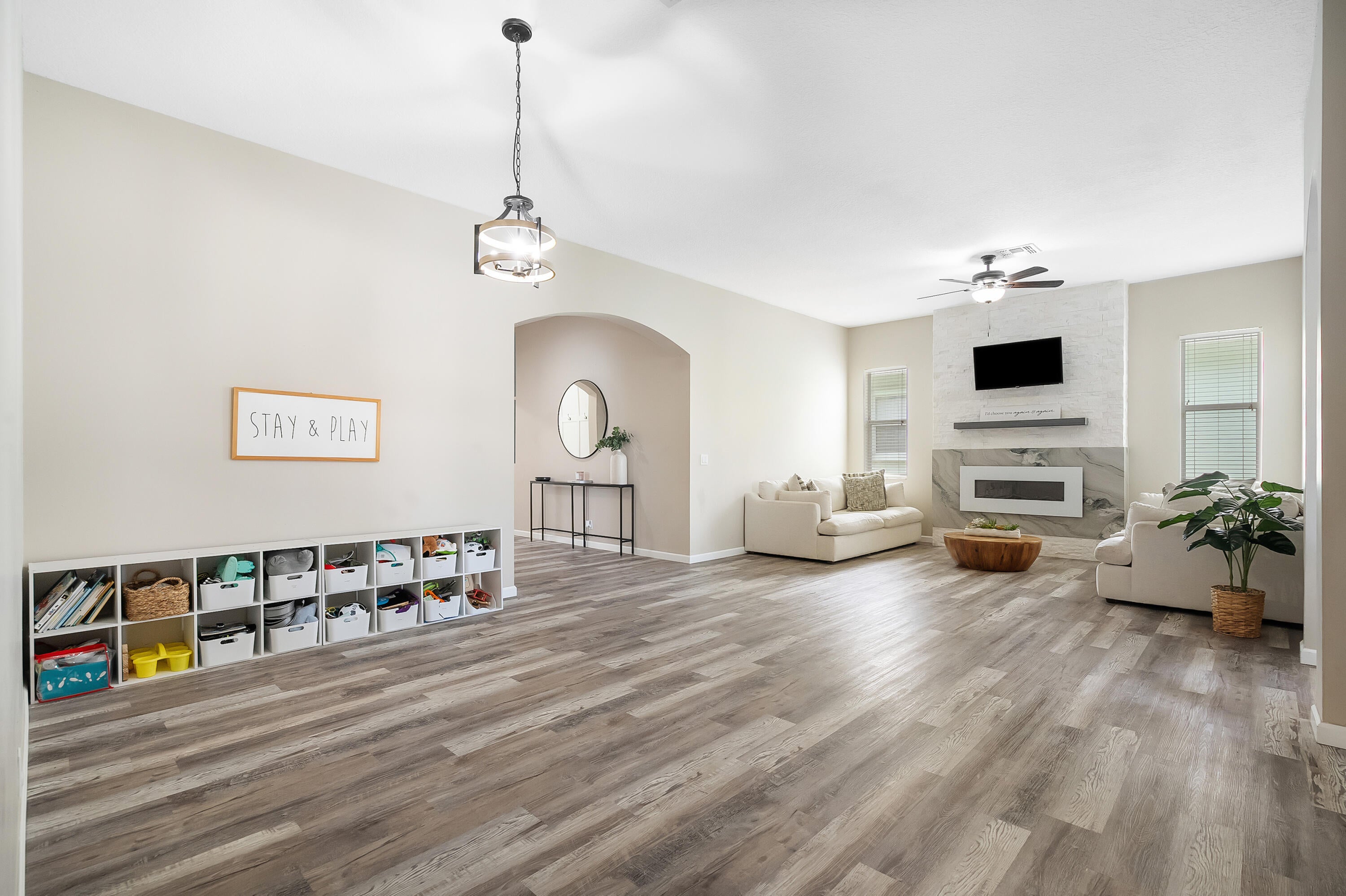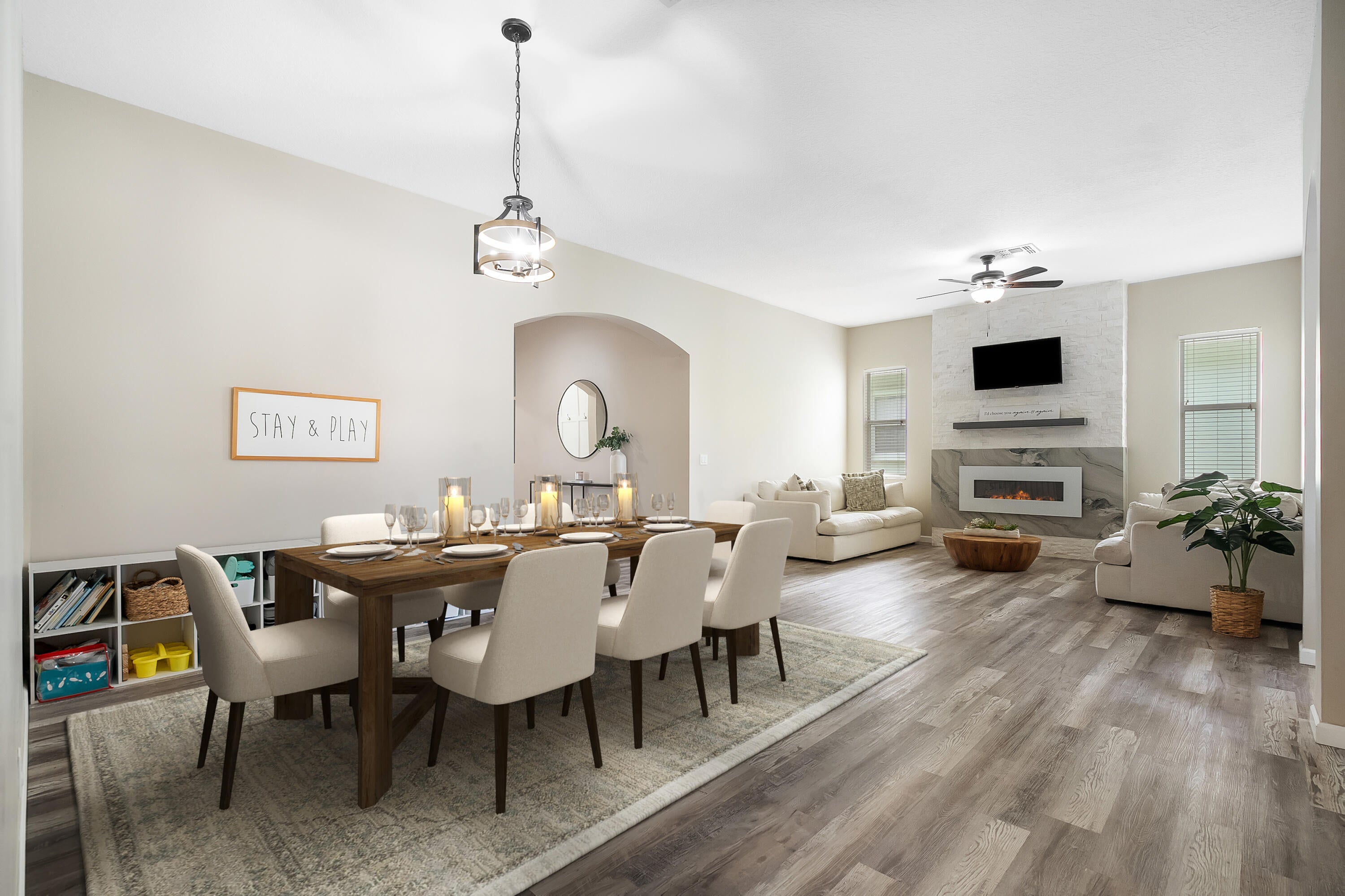 Follow tree lined streets to this striking 4-bedroom, 3-bathroom premium lake-view retreat in the sought-after, gated community of Magnolia Lakes! Featuring a thoughtfully designed three-way split floor plan, this home offers both privacy and functionality. Soaring vaulted ceilings create an airy, open feel, while luxury vinyl plank flooring is both beautiful and durable. The updated kitchen has Calcutta quartz countertops and a spacious bar top, perfect for entertaining. Cozy up by the LED-lit quartzite stone-wrapped fireplace, a true showpiece of the living space. With breathtaking lake views from your screened patio and fully fenced back yard, this home is a must-see. Fabulous amenities include a tot lot, basketball court, pool, tennis court, clubhouse, gym and steam room. Tucked awayyet perfectly convenient to Saint Lucie West Boulevard's shopping, dining, entertainment, and Clover Park baseball complex.