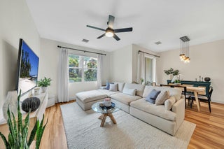 This beautifully maintained 3-bedroom, 2.5-bath townhome with a 1-car garage is located in a sought-after gated community and features numerous upgrades throughout. The open-concept main level showcases stylish laminate flooring and an updated kitchen with quartzite countertops and stainless steel appliances. May be sold partially furnished . The primary suite includes a newly renovated bathroom with designer finishes and a custom-built closet system. Reverse osmosis water filtration system. NEW ROOD AUGUST 2025 . Enjoy tranquil garden views from both the living and dining areas. Community amenities include 3 resort-style pools with a hot tub, 2 tennis courts, a fully equipped fitness center, and a playground.
