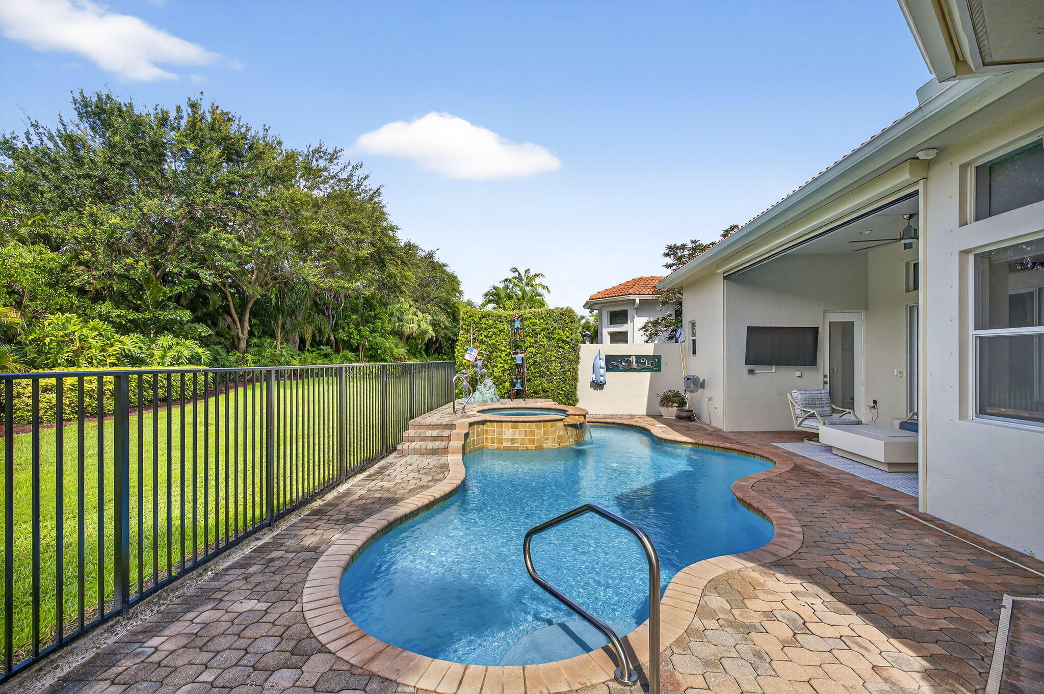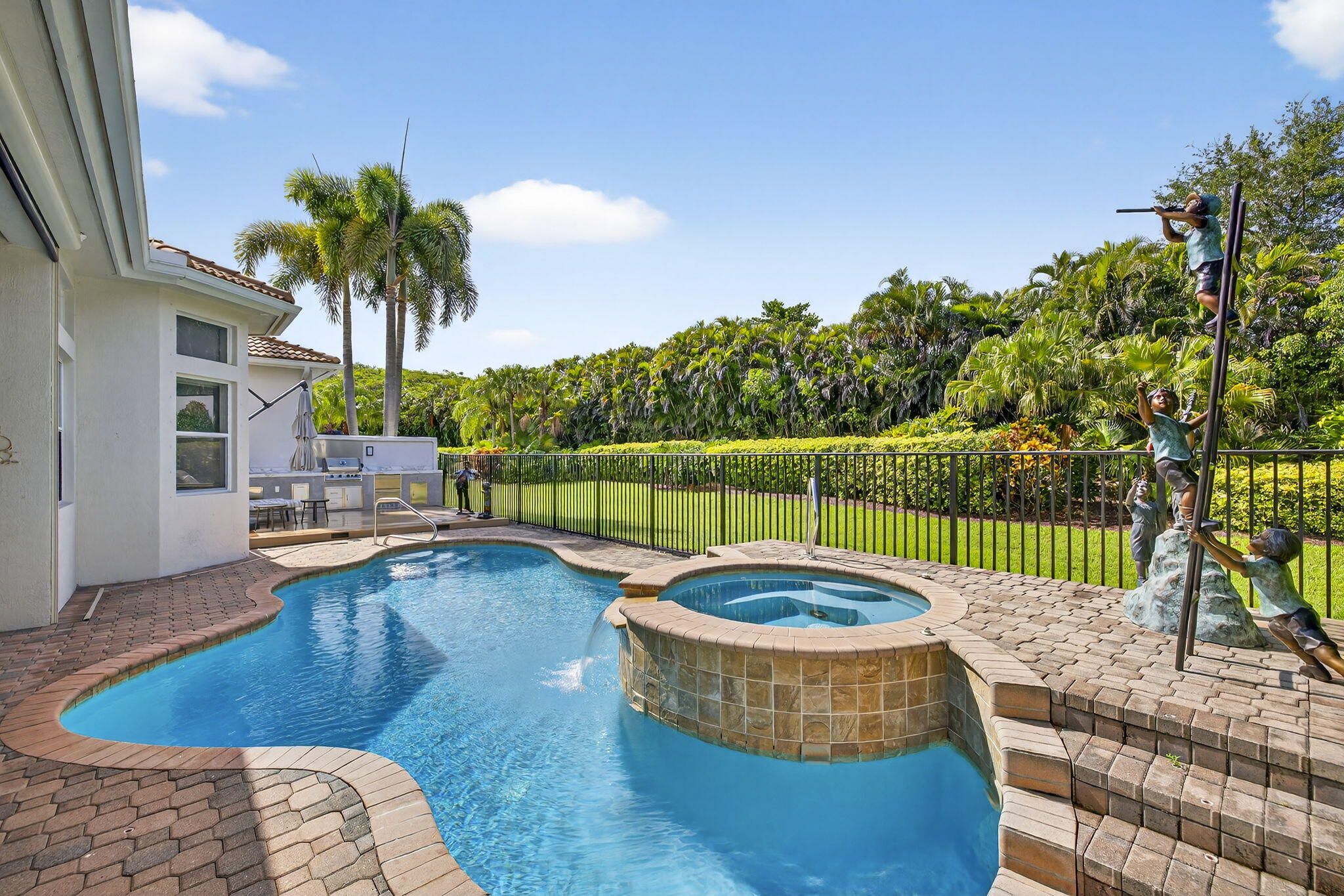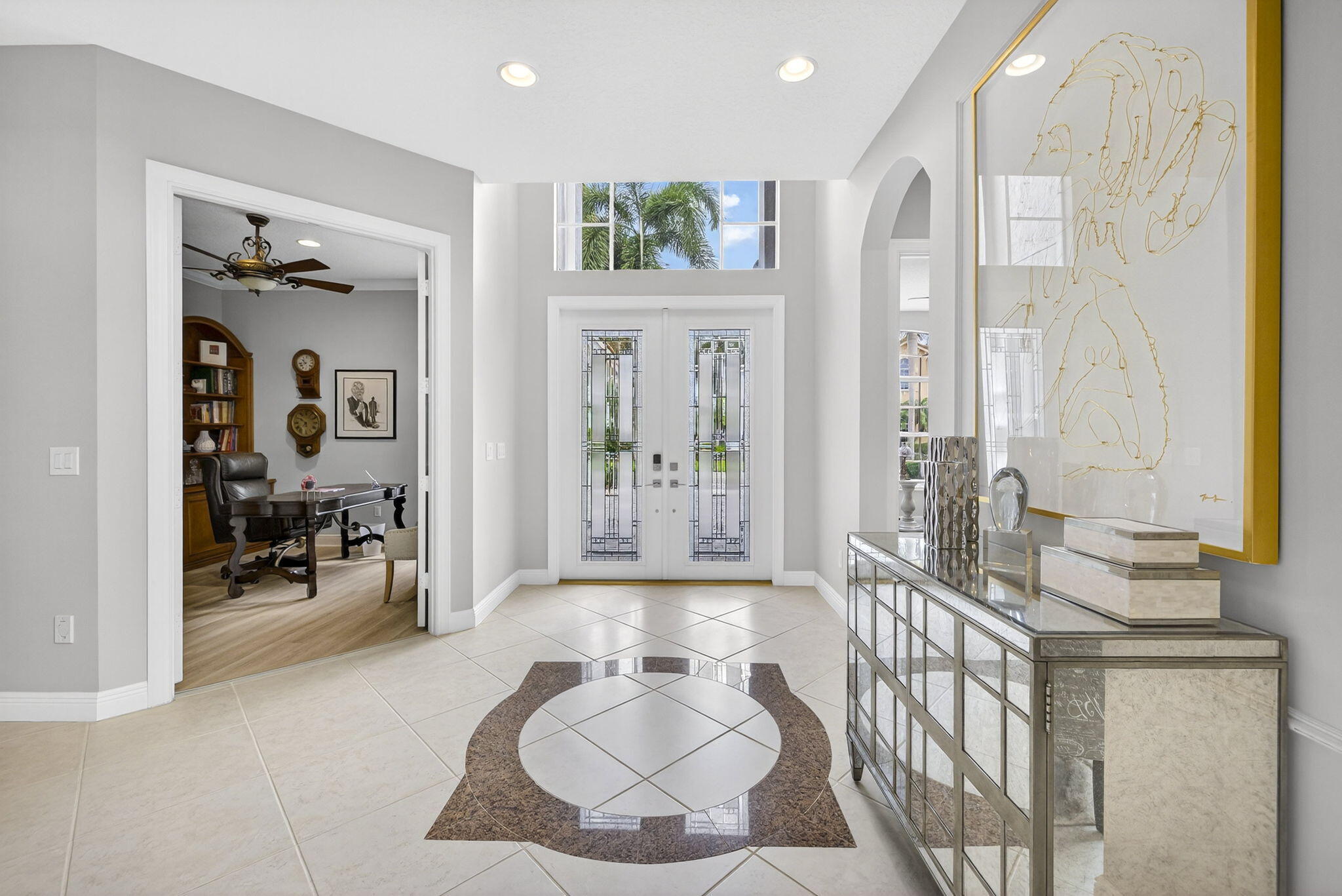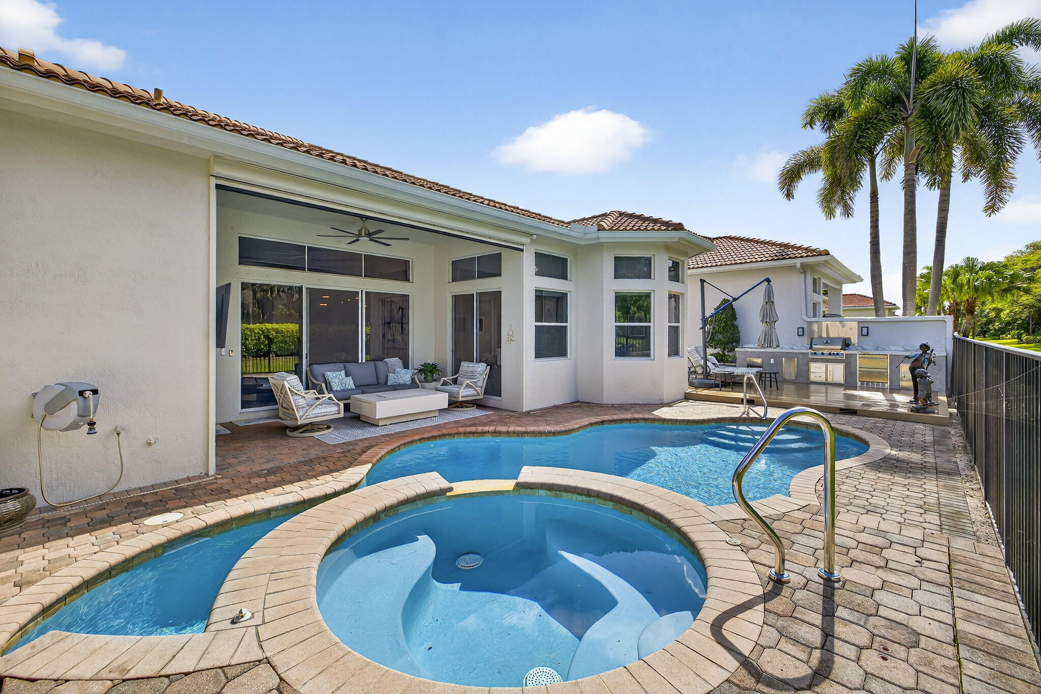 Welcome to Mizner Country Club in the heart of Delray Beach! Experience this tastefully updated estate offering 4 bedrooms and 5.5 bathrooms. Sold completely furnished excluding some artwork, primary bedroom furniture, and personal items. Recent upgrades include; new quartz countertops in the kitchen and all bathrooms, new flooring upstairs and downstairs den, resurfaced pool, outdoor kitchen and decking, new paver driveway added for extra parking, new outdoor kitchen and decking, complete paint inside and out, and much more! Massive vaulted ceilings in the family room. All bedrooms are ensuite. 3 pickleball courts, 6 tennis courts, 18 hole championship golf course. Golf Membership = $200,000 initiation. Sports Membership = $170,000 initiation.