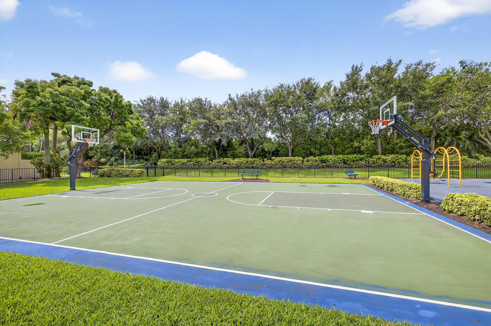 Basketball, Bike - Jog, Cafe/Restaurant, Clubhouse, Community Room, Exercise Room, Fitness Trail, Game Room, Manager on Site, Pickleball, Playground, Pool, Spa-Hot Tub, Street Lights, Tennis, Golf Course, Putting Green