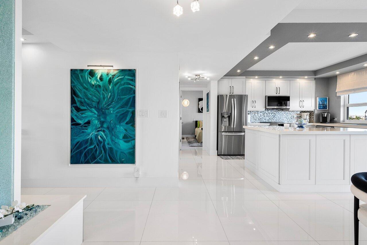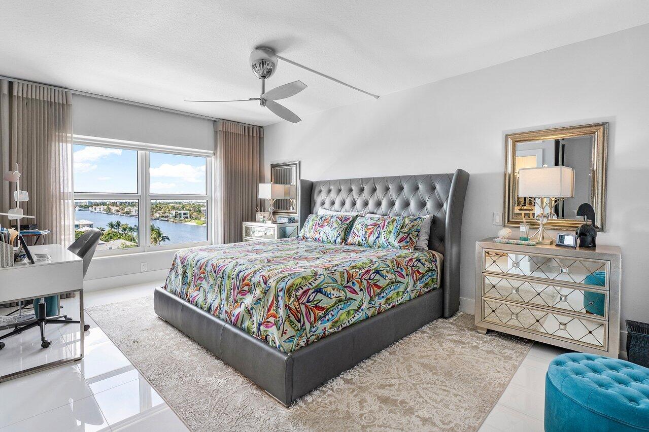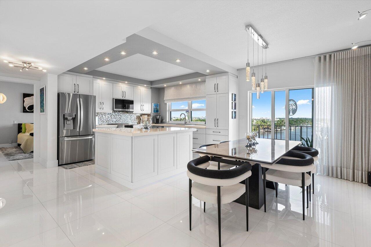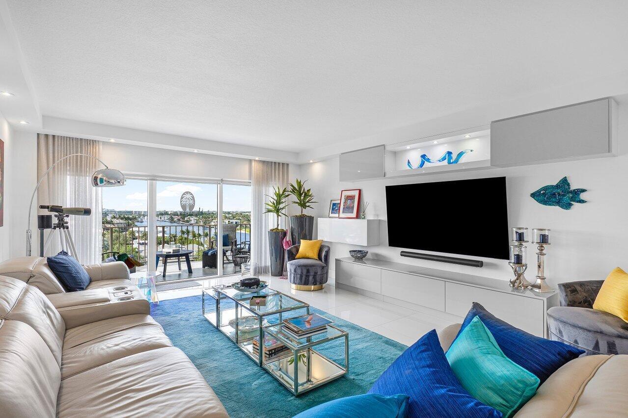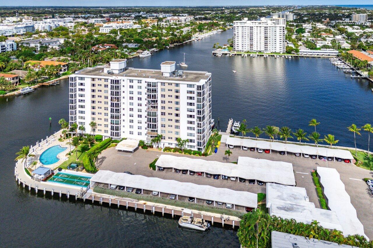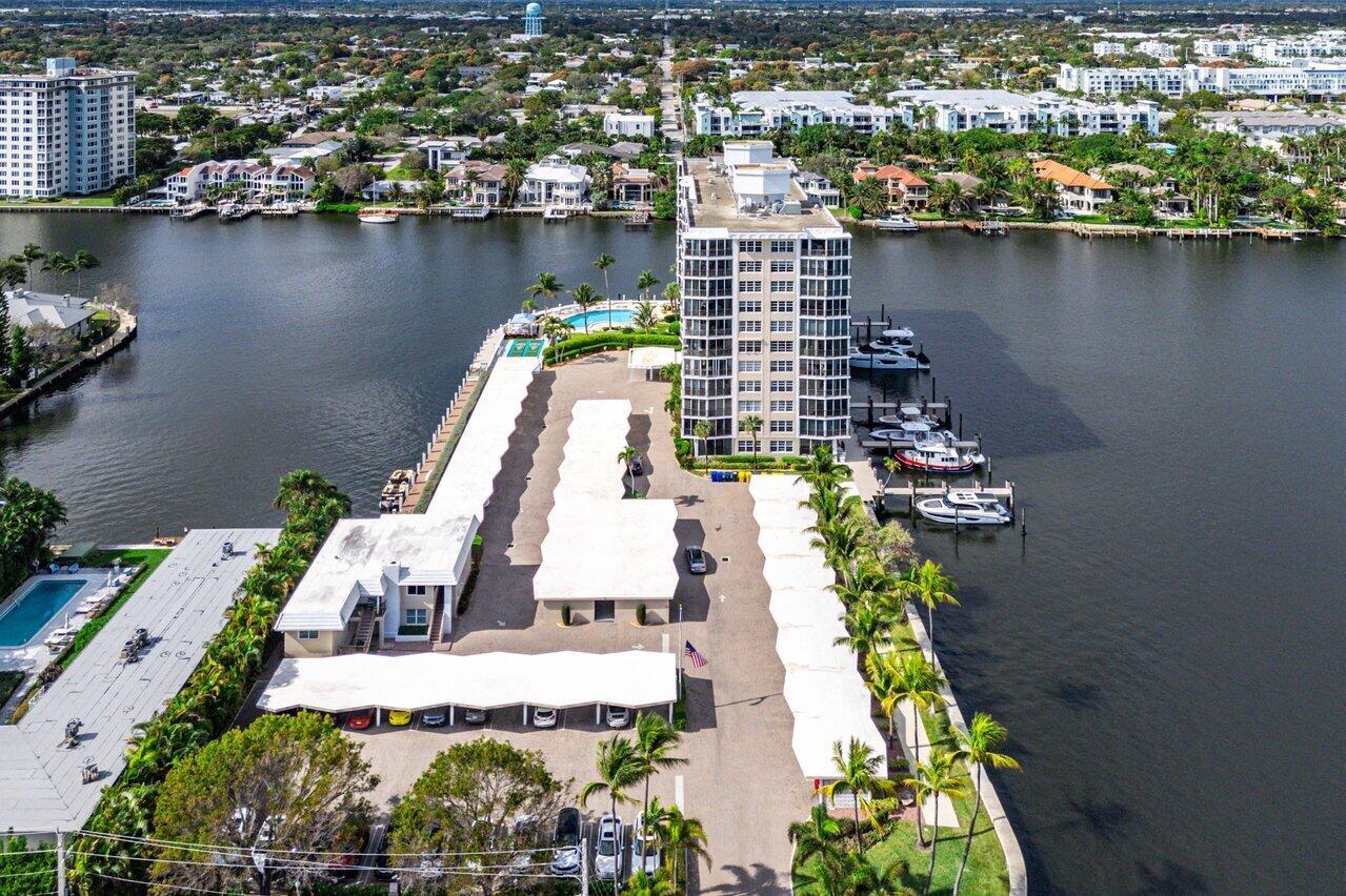 Prepare to say WOW. Stunning waterfront views from this remodeled 2 bedroom, 2 bath condo directly on the Intracoastal. Features gorgeous porcelain floors throughout, impact windows, remodeled kitchen with an island and wine fridge, new refrigerator, new stove and new washer dryer inside the unit. Primary bedroom has incredible views, large walk in closet and primary bath has dual sinks plus a separate makeup area. Two huge balconies with north and south facing views up and down the waterway. Building recently completed major enhancements, including a concrete restoration project and a seawall upgrade. Milestone and SIRS complete! NO ASSESSMENTS! First-come-first-serve boat slip dockage accommodating vessels up to 50 feet, along with a storage space & bicycle storage. Over 55 Bldg.