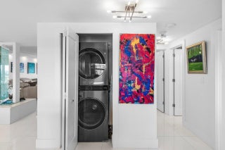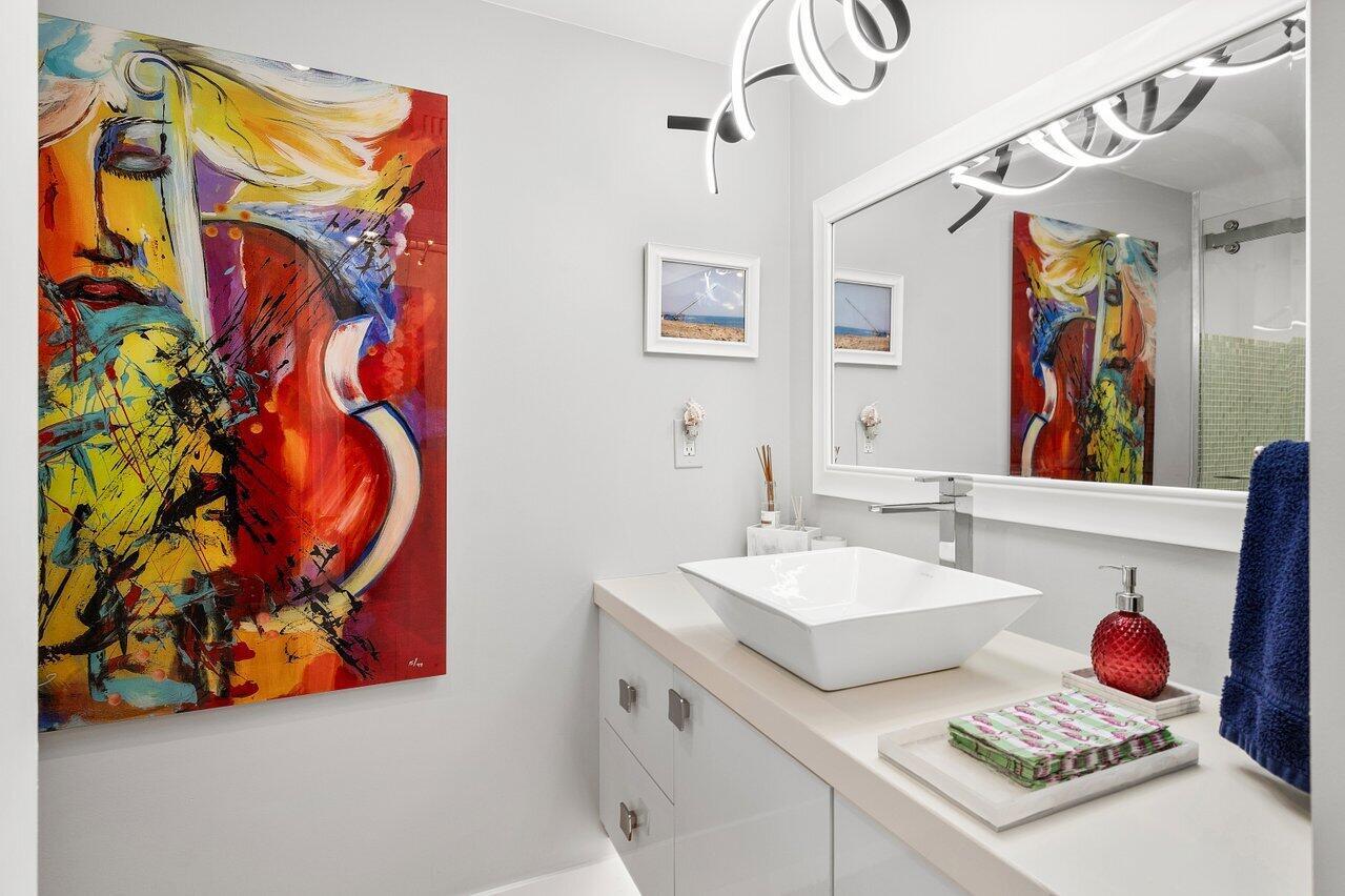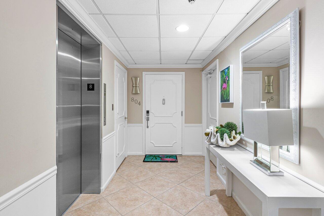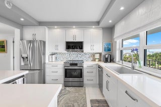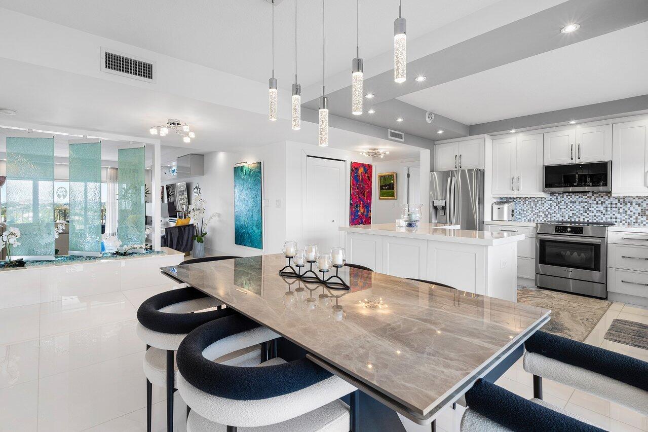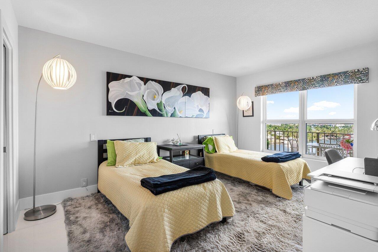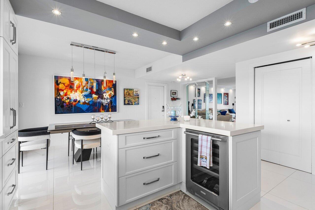Prepare to say WOW. Stunning waterfront views from this remodeled 2 bedroom, 2 bath condo directly on the Intracoastal. Features gorgeous porcelain floors throughout, impact windows, remodeled kitchen with an island and wine fridge, new refrigerator, new stove and new washer dryer inside the unit. Primary bedroom has incredible views, large walk in closet and primary bath has dual sinks plus a separate makeup area. Two huge balconies with north and south facing views up and down the waterway. Building recently completed major enhancements, including a concrete restoration project and a seawall upgrade. Milestone and SIRS complete! NO ASSESSMENTS! First-come-first-serve boat slip dockage accommodating vessels up to 50 feet, along with a storage space & bicycle storage. Over 55 Bldg.