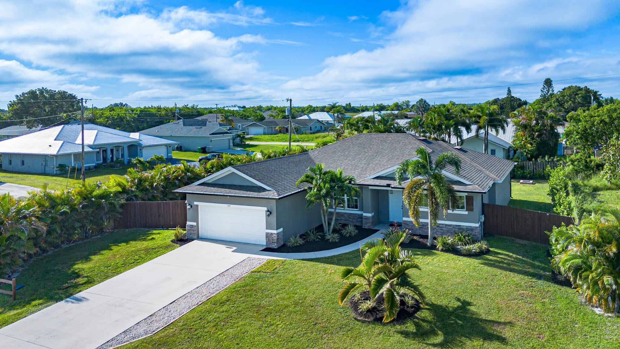No HOA! Built in 2018, this 3BR/2BA home w/ extra flex/office space sits on a spacious .31-acre corner lot.....plenty of room for a pool, play area, RV, boat, or toys.Bright, open layout w/ 2,039 SF well designed living space. Wood-look tile throughout (no carpet!). Fully fenced yard for privacy + pets.Prime location near I-95, Turnpike, Cleveland Clinic, Tradition, shops, & dining. Close to major employers like Amazon, Cheney Bros & Costco Dist. Ctr.Just 15 mi to Hutchinson Island beaches, 45 mins to PBI, 2 hrs to Orlando/Miami.