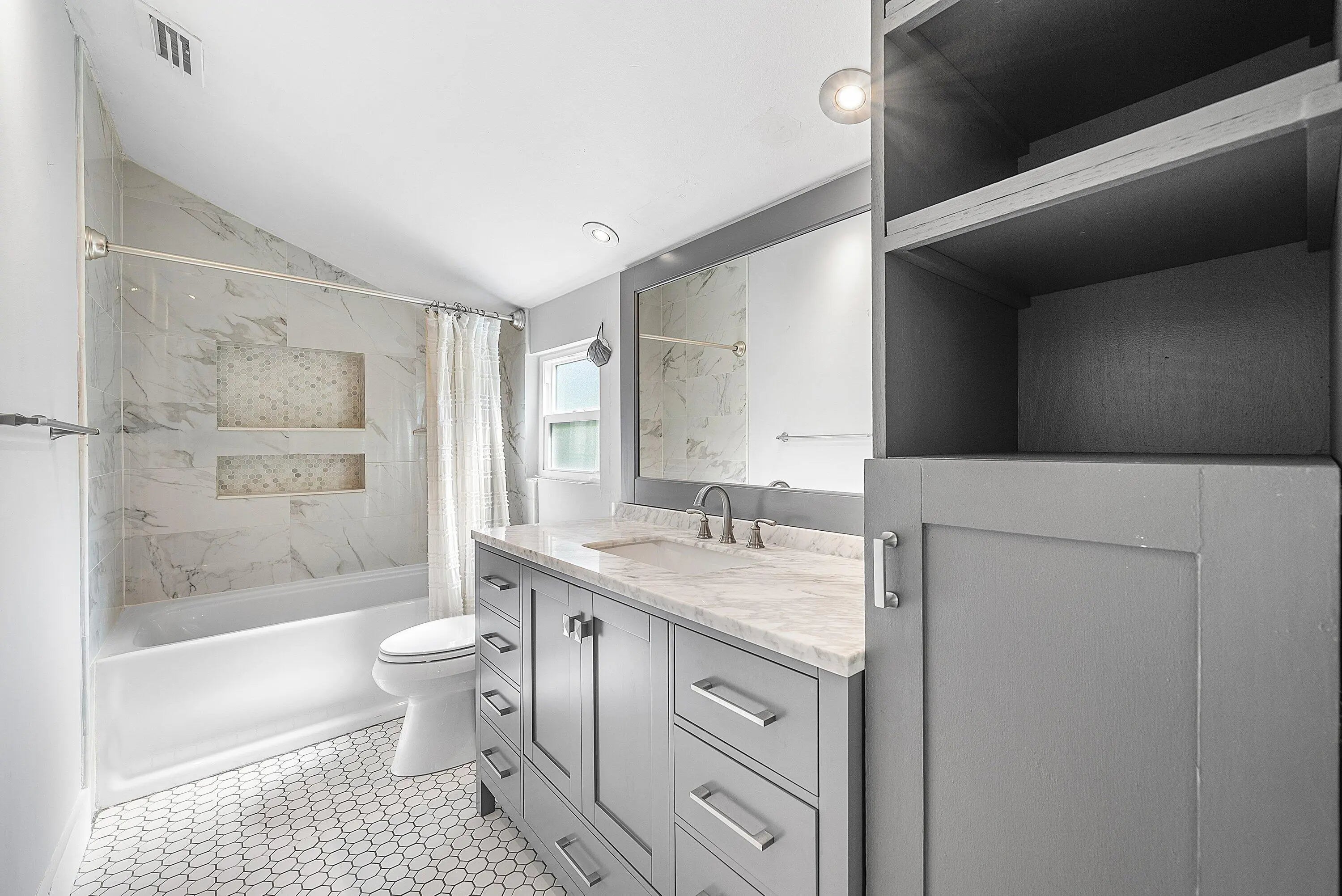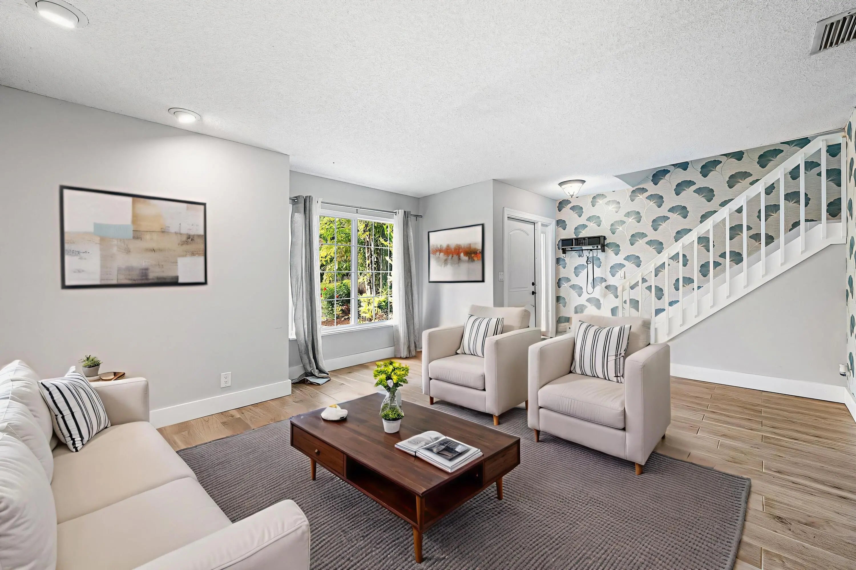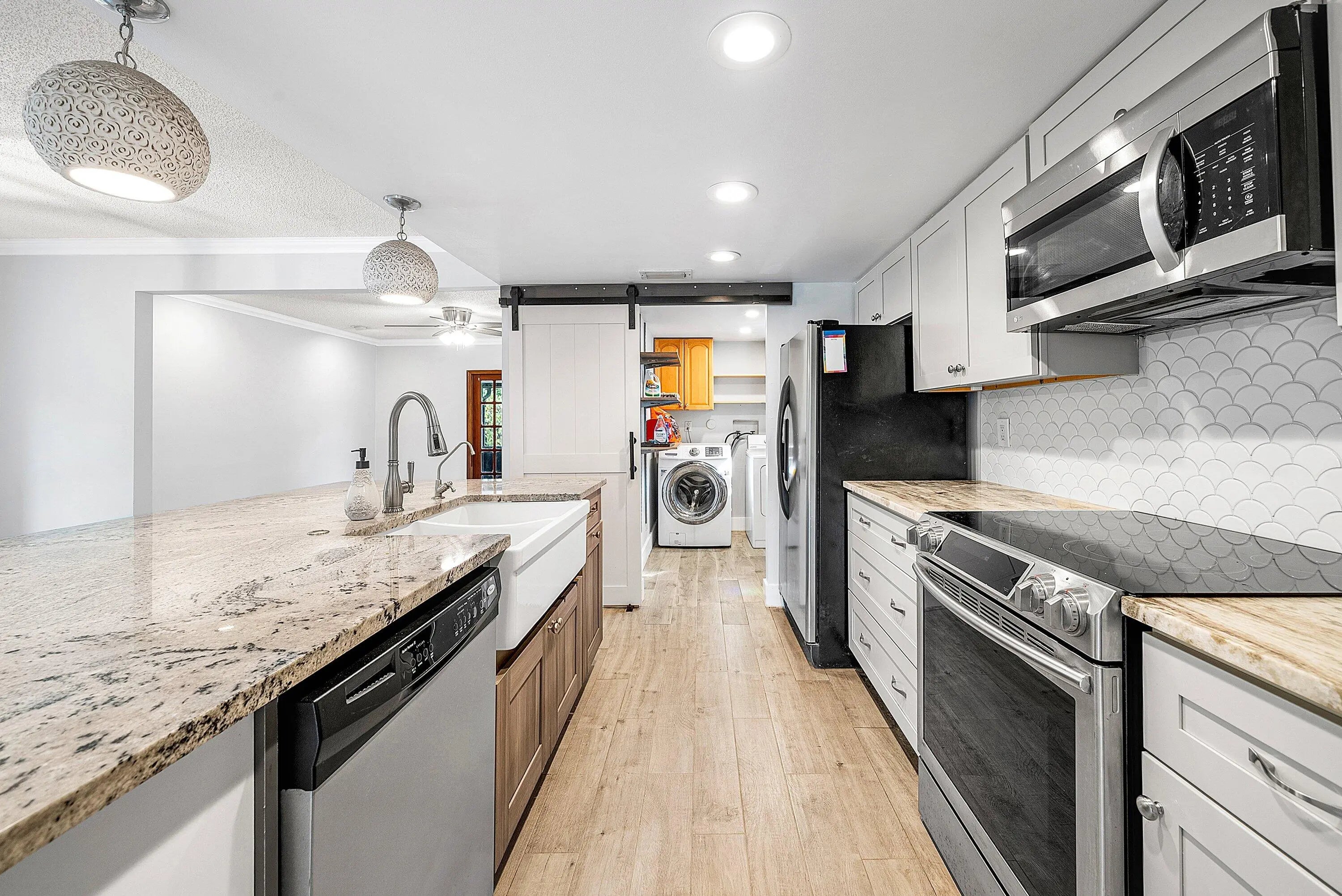 Stunningly Renovated & Move-In Ready! Step into this beautifully updated home where every detail has been thoughtfully designed for style, comfort, and peace of mind. The chef's kitchen is a showstopper, featuring a massive granite island, brand-new custom cabinetry, a stylish backsplash, and gleaming granite countertops -- perfect for cooking, entertaining, and gathering with friends & family. Enjoy 3 fully renovated bathrooms (two full + one half) and fresh new luxury flooring upstairs, complemented by the charm of original oak hardwood floors in the spacious bedrooms. The home boasts Hardy Board siding, a 2021 roof with wind mitigation compliance, a 2025 AC, Cat 5 hurricane-rated impact windows, & an impact front door -- offering both beauty & security. Some photos virtually staged.