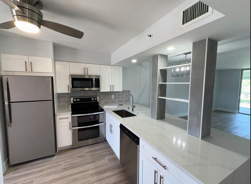 Available furnished PALM BEACH LIFESTYLE for season or year-round in this 2 bed/2 bath condo overlooking sparkling waterways. Updated MODERN TOUCHES. Kitchen open living spaces, WATERFALL QUARTZ COUNTER and DECORATIVE SHELVES. Spacious bathrooms, FLOATING VANITIES, PEBBLESTONE SHOWER FLOOR as well as MARBLE-LOOK WALL TILES. Gorgeous light-colored WOOD-LIKE TILE FLOORS give the feel of a beach cottage. MODERN CHANDELIER and LIGHT FIXTURES complete this condo updates. Close to shops, restaurants, Delray beaches, nightlife of Atlantic Ave and Delray Marketplace. Villages of Oriole Bonaire is a QUIET ENCLAVE with WALKING PATH, which offers clubhouse, pool, fitness center.