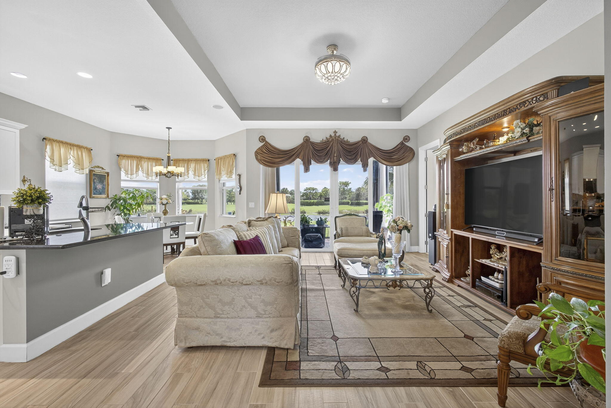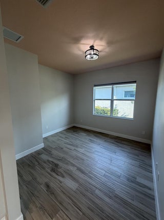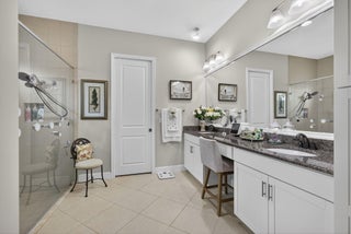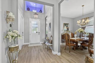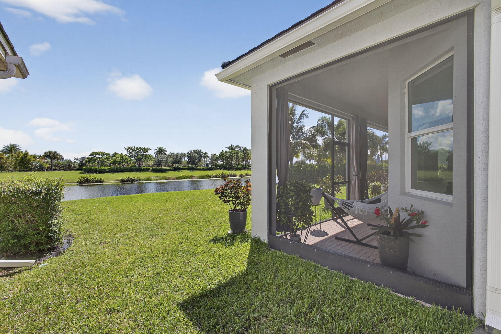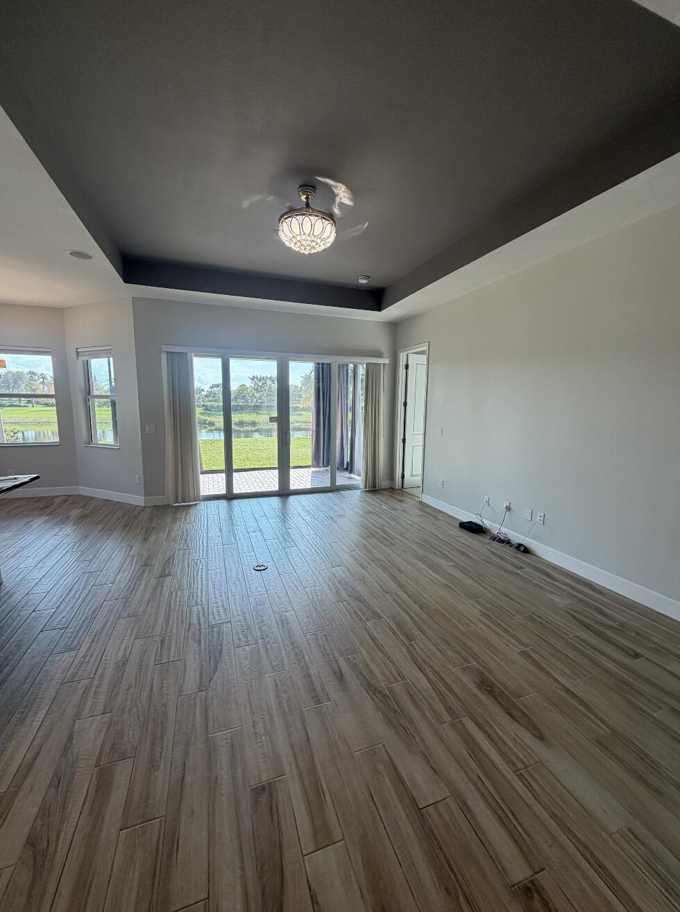 Welcome to your WATER VIEW (with no rear neighbors ever), MOVE IN READY versatile 3-bedroom (3rd room currently being used as a dining room) 2-bathroom layout offering exceptional flexibility. The 3rd room is easily converted into a bedroom, the closet is built out, requiring only doors and tracks to complete the transformation. This impeccably maintained and tastefully upgraded residence located in the highly sought-after Hammocks community of Westlake.Step inside and be greeted by a bright, open and airy lake view, on wood-inspired tile flooring that offers the timeless appeal of hardwood with the durability and ease of tile.The open-concept floor plan is centered around a chef's kitchen, equipped with a gas range, GE appliances granite countertops, modern glass subway backsplash, stainless steel appliances, and an expansive island ideal for culinary creations and effortless entertaining. Enjoy efficient comfort year-round with a tankless gas water heater, ensuring endless hot water. The primary suite is a true retreat, featuring a spa-inspired bath with dual vanities, an oversized glass-enclosed shower, and a generous walk-in closet. Enhance your lifestyle with seamless indoor-outdoor living. The screened-in, covered patio offers a tranquil setting for relaxation or hosting, complete with a 32" mounted TV for the ultimate outdoor lounge experience. The expansive backyard provides ample space for a future pool, garden, or play area. As a resident of The Hammocks at Westlake, you'll enjoy access to a suite of resort-style amenities, including a clubhouse, resort pool, splash pad, fitness center, playgrounds, and more. The community is zoned for and offers convenient access to shopping, dining, and major commuter routes. This move-in ready home combines elevated finishes, functional design, and exceptional community living. Don't miss your opportunityschedule your private showing today.