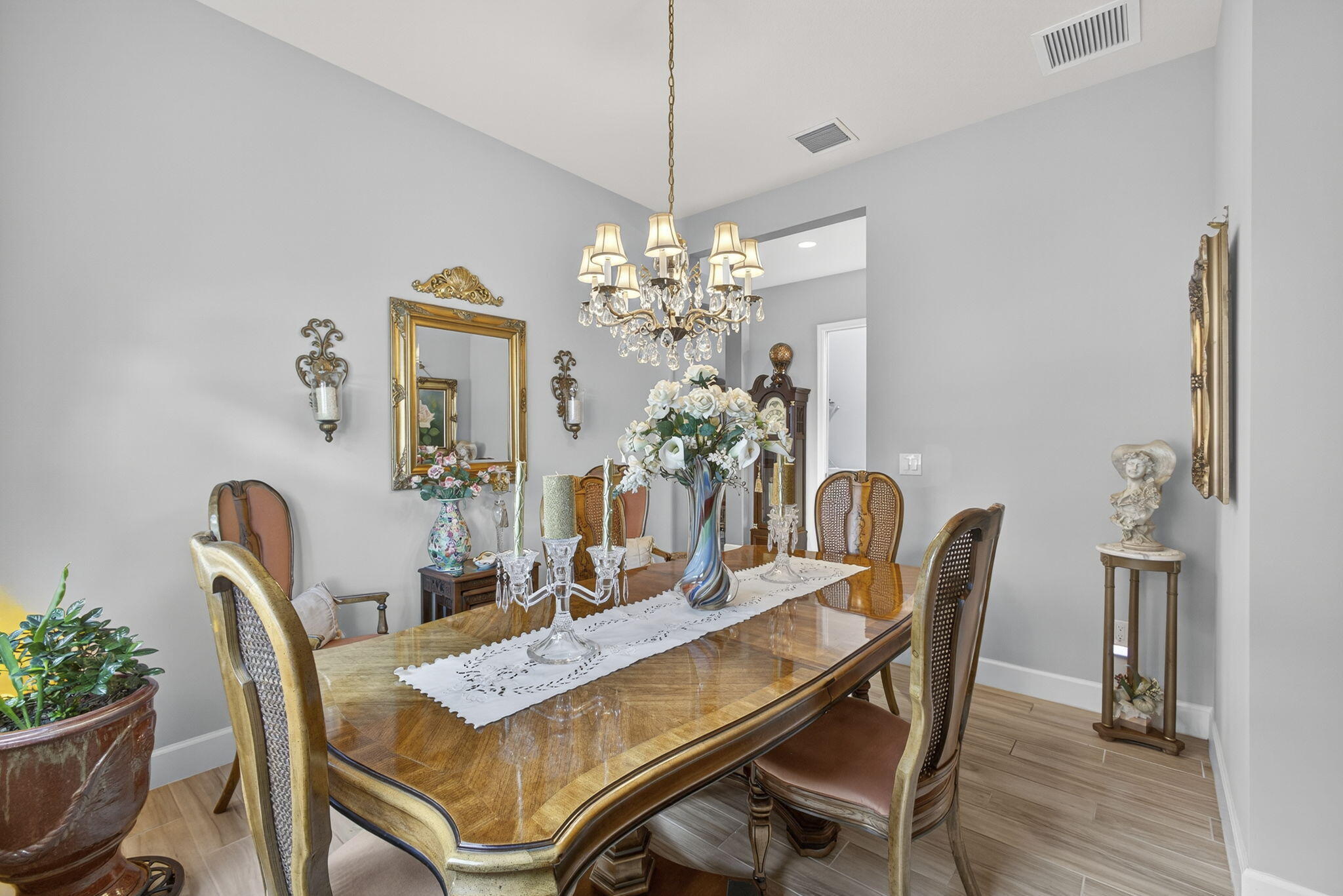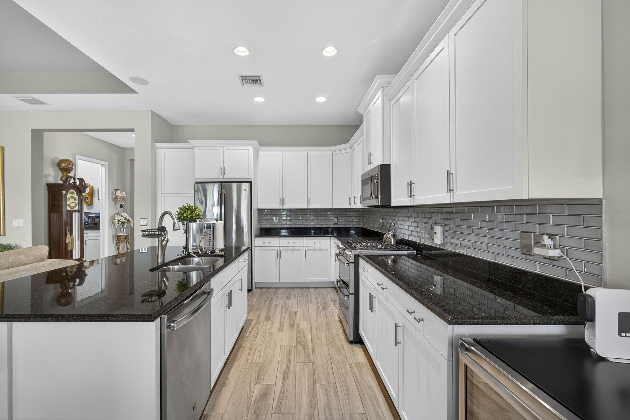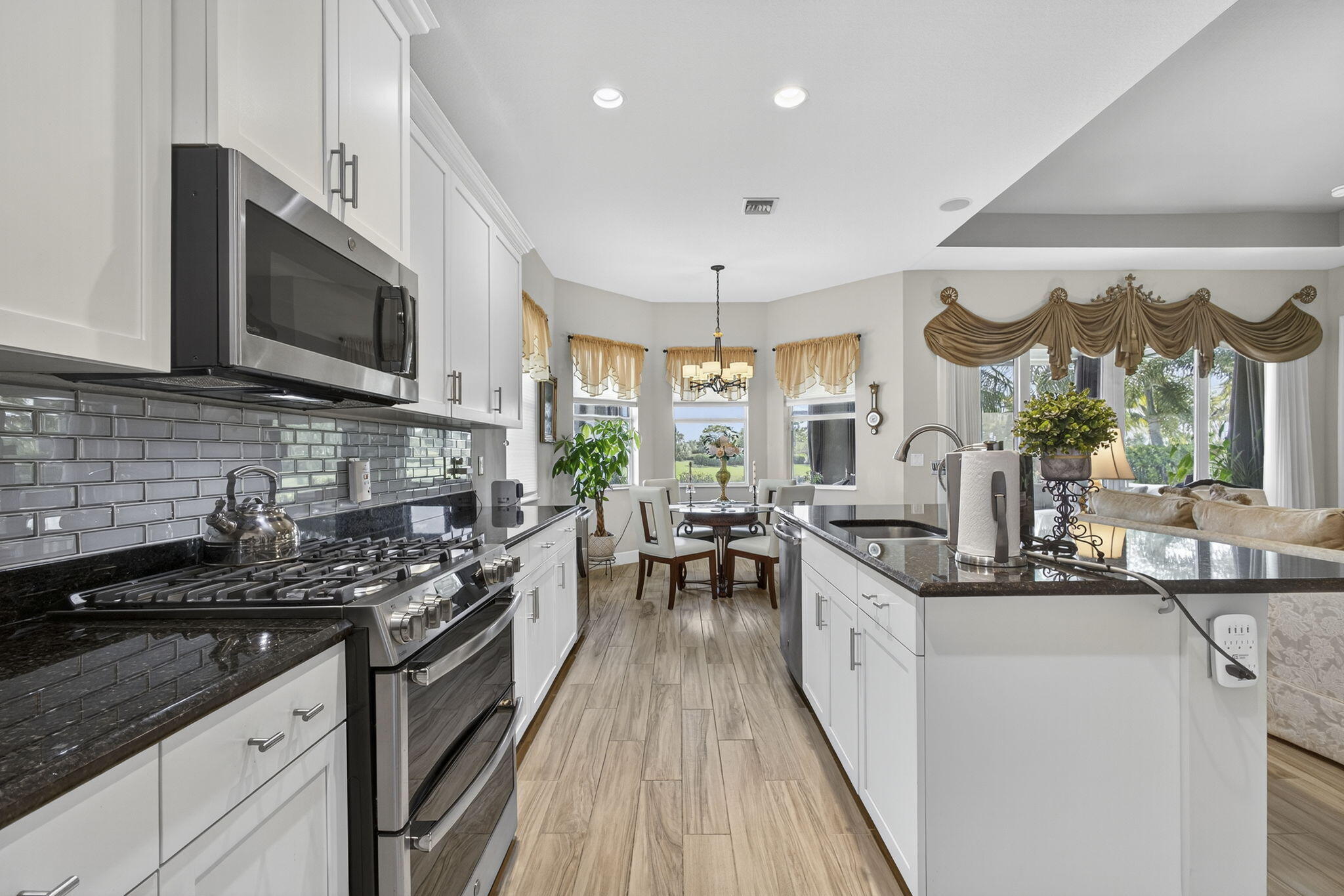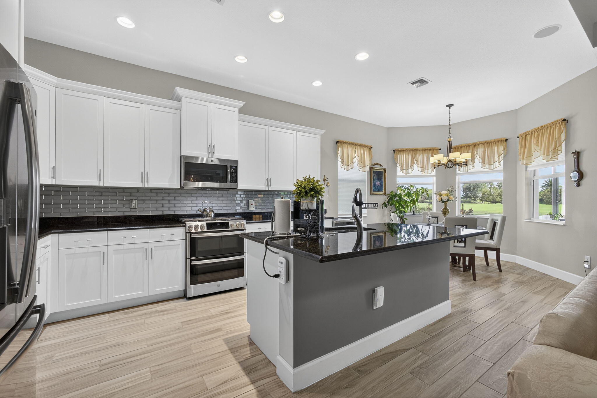 Welcome to your WATER VIEW (with no rear neighbors ever), MOVE IN READY versatile 3-bedroom (3rd room currently being used as a dining room) 2-bathroom layout offering exceptional flexibility. The 3rd room is easily converted into a bedroom, the closet is built out, requiring only doors and tracks to complete the transformation. This impeccably maintained and tastefully upgraded residence located in the highly sought-after Hammocks community of Westlake.Step inside and be greeted by a bright, open and airy lake view, on wood-inspired tile flooring that offers the timeless appeal of hardwood with the durability and ease of tile.The open-concept floor plan is centered around a chef's kitchen, equipped with a gas range, GE appliances granite countertops, modern glass subway backsplash, stainless steel appliances, and an expansive island ideal for culinary creations and effortless entertaining. Enjoy efficient comfort year-round with a tankless gas water heater, ensuring endless hot water. The primary suite is a true retreat, featuring a spa-inspired bath with dual vanities, an oversized glass-enclosed shower, and a generous walk-in closet. Enhance your lifestyle with seamless indoor-outdoor living. The screened-in, covered patio offers a tranquil setting for relaxation or hosting, complete with a 32" mounted TV for the ultimate outdoor lounge experience. The expansive backyard provides ample space for a future pool, garden, or play area. As a resident of The Hammocks at Westlake, you'll enjoy access to a suite of resort-style amenities, including a clubhouse, resort pool, splash pad, fitness center, playgrounds, and more. The community is zoned for and offers convenient access to shopping, dining, and major commuter routes. This move-in ready home combines elevated finishes, functional design, and exceptional community living. Don't miss your opportunityschedule your private showing today.