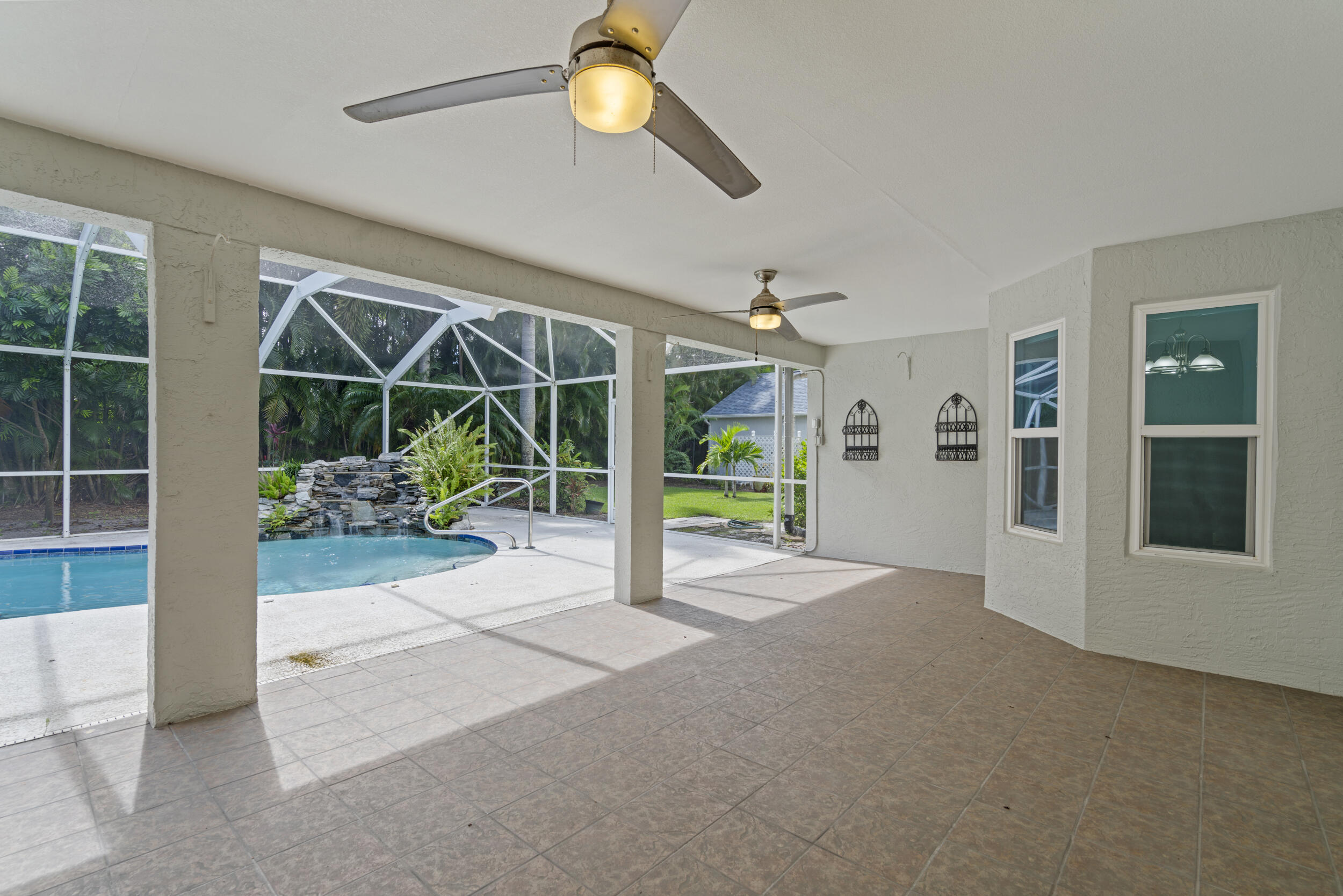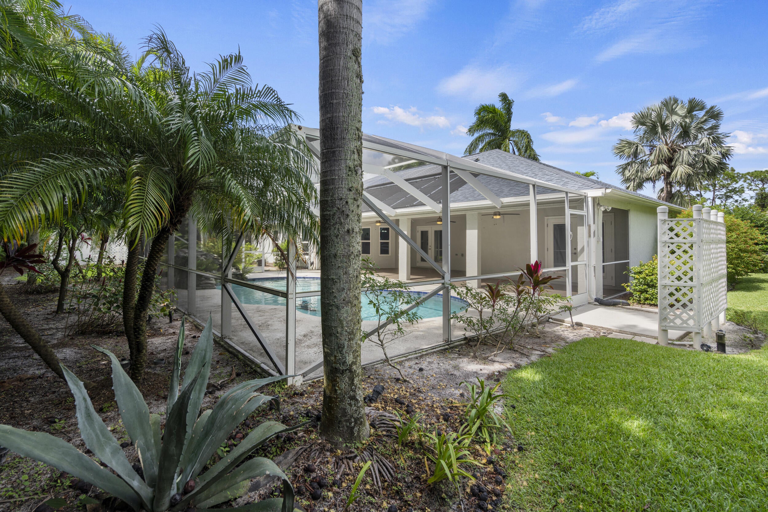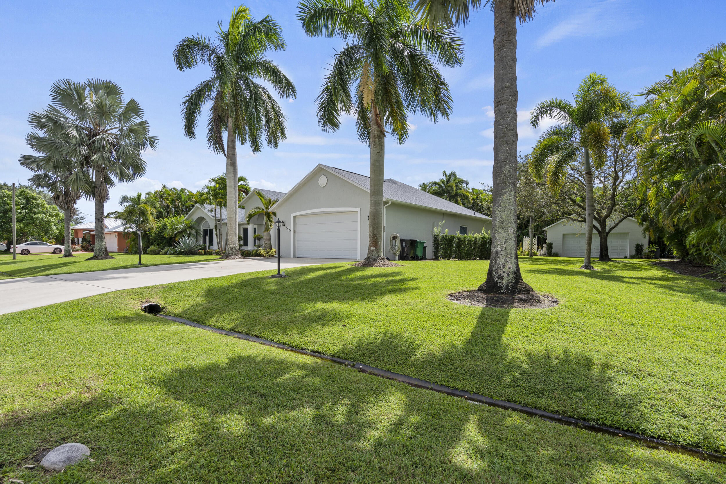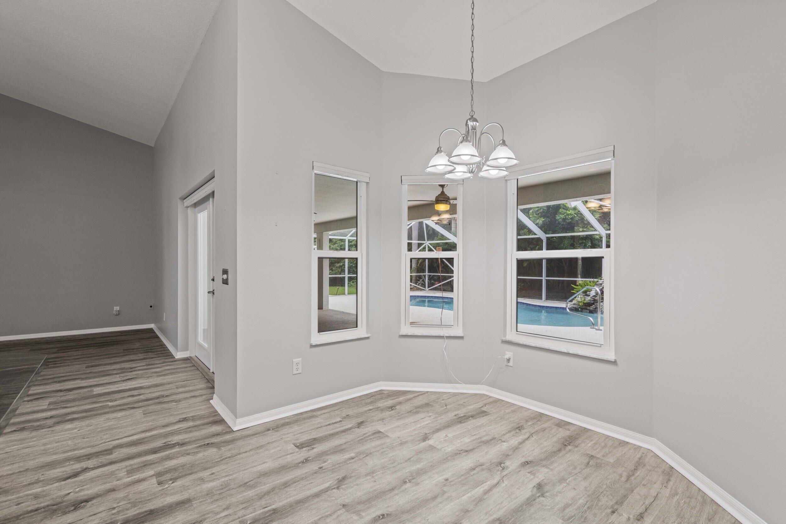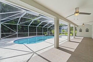 Picturesque pool home on an 1/2 Acre lot with Great Curb Appeal & plush landscaping in the desirable Torino neighborhood! This 3 BR's, 2 BA's home plus Den offers HURRICANE IMPACT windows and doors. Foyer entrance, vaulted ceilings & shows exceptional. Beautiful updated eat in kitchen includes new stainless steel appliances, pantry & granite counter tops. Details include updated gorgeous baths, new Vinyl & Tile flooring, NO carpet & NEW ROOF (2020). Enjoy both an attached oversized 2 car garage and a detached garage/workshop - perfect for storage, hobbies or a home office. Screen enclosed solar heated pool with a rock waterfall & spacious covered lanai offers the ultimate space for entertaining or relaxing. Auto sprinkler with well, NO HOA, A/C -2017 with UV light, Water Heater - 2023.