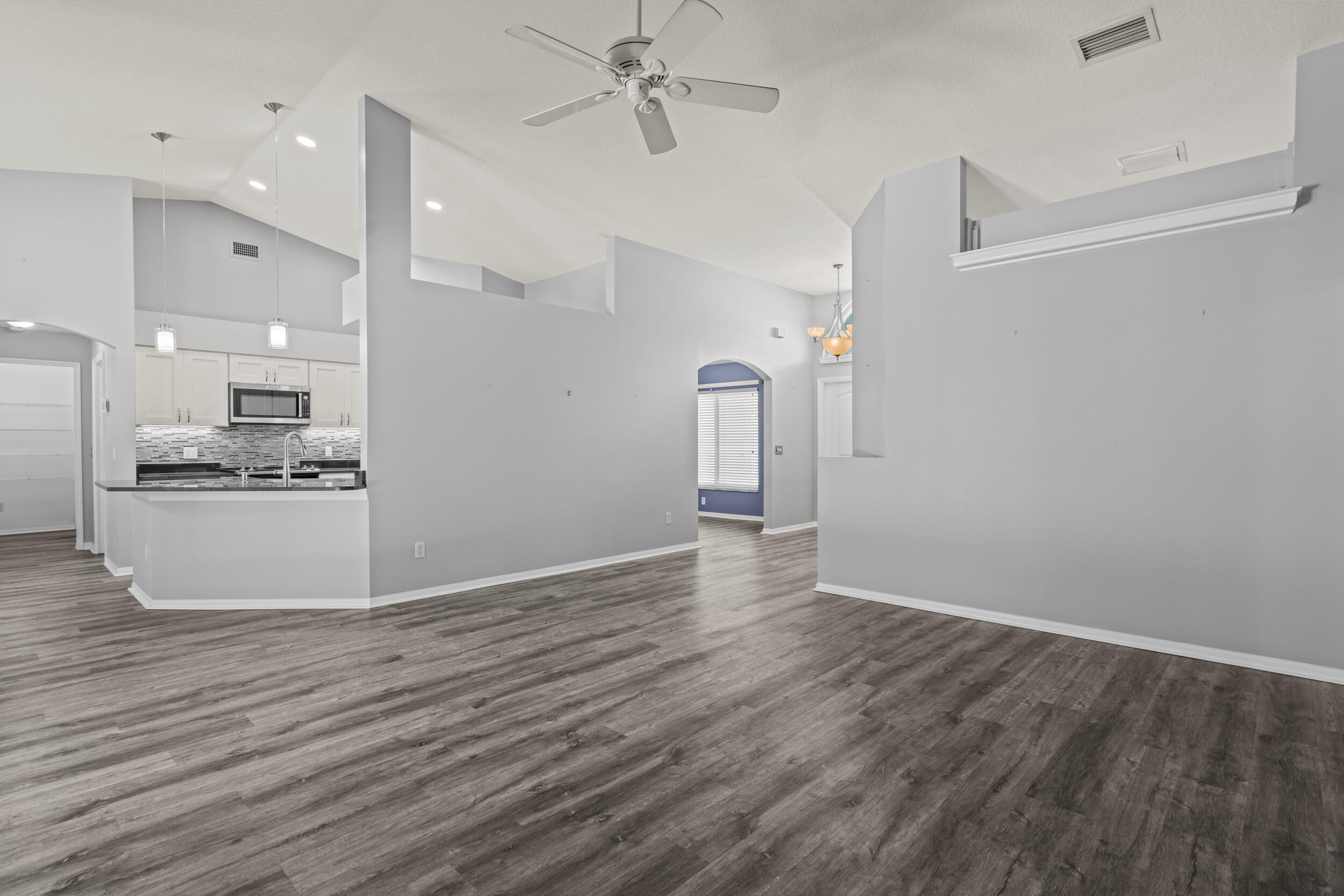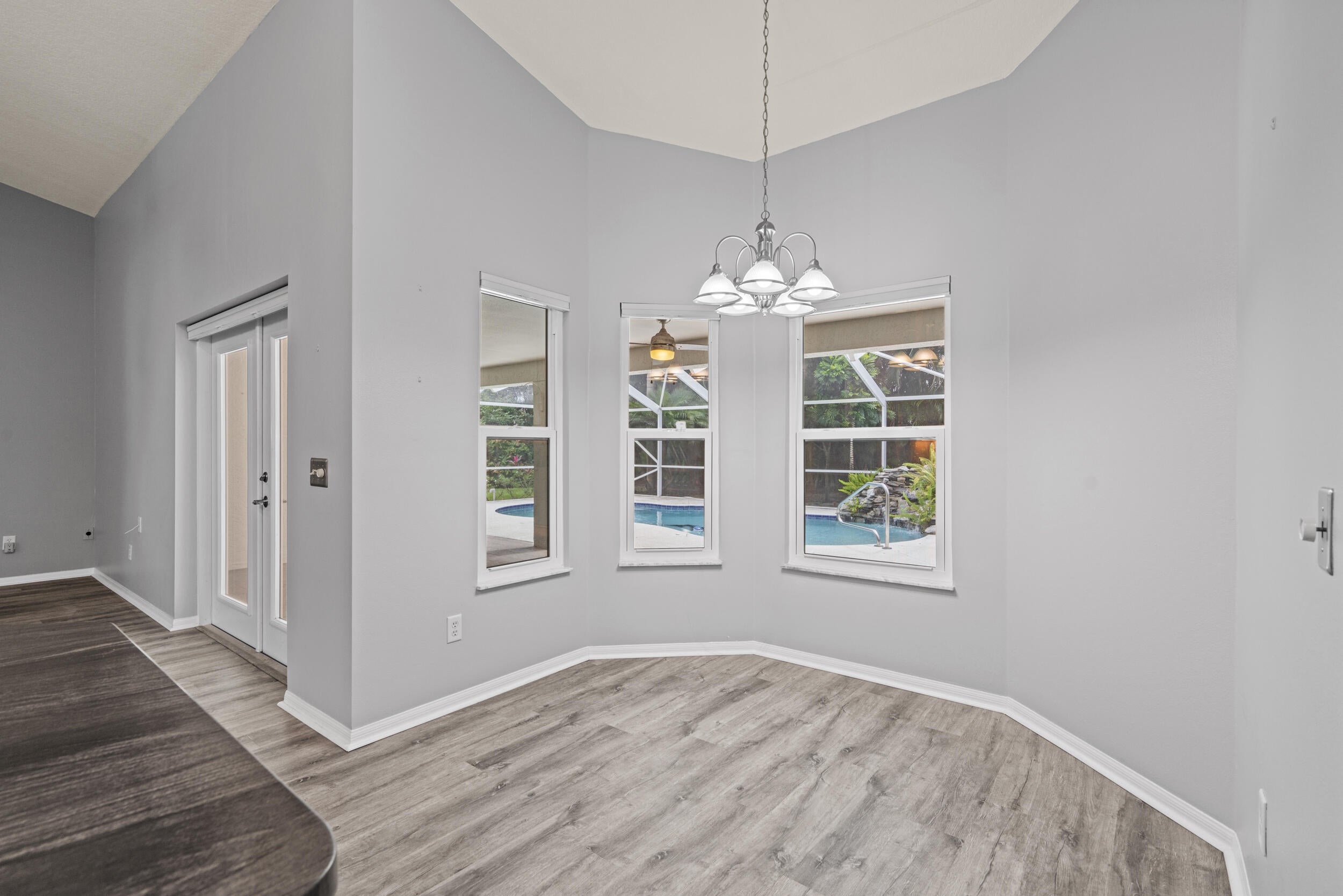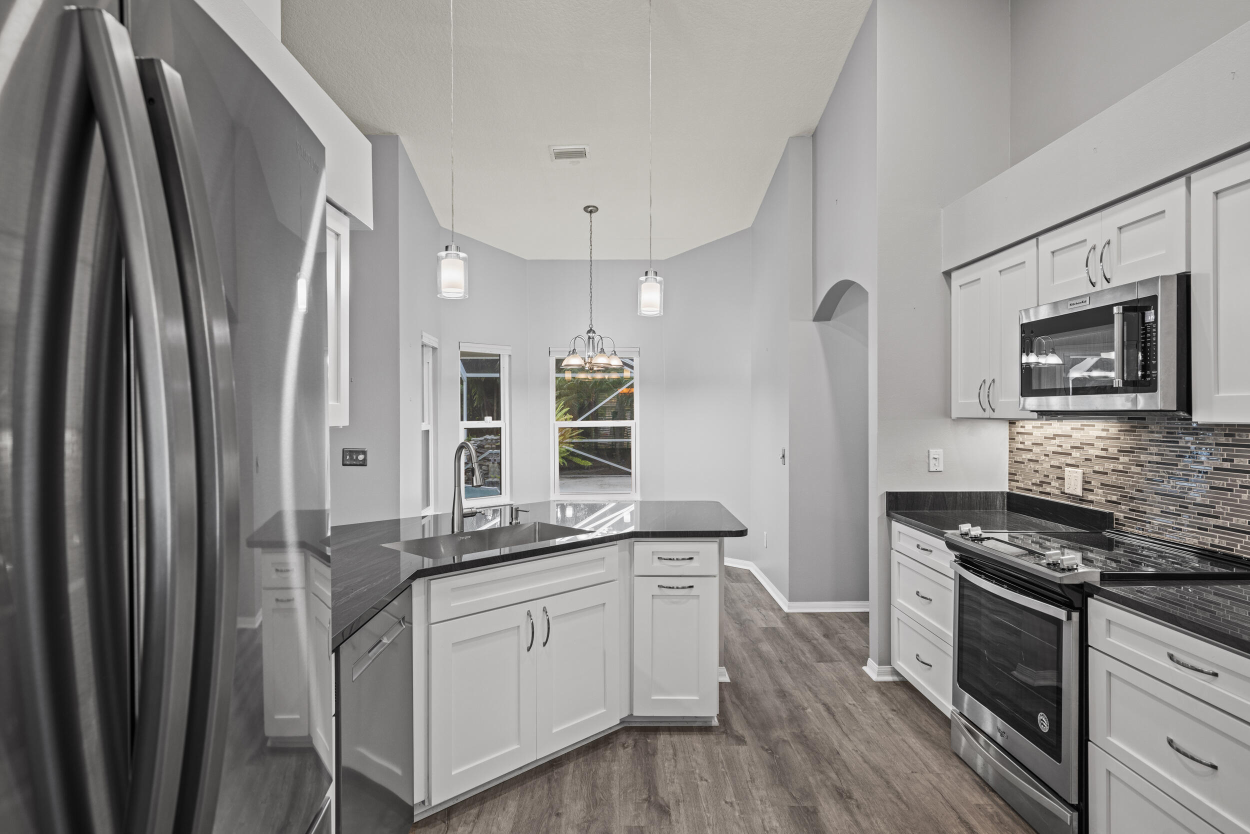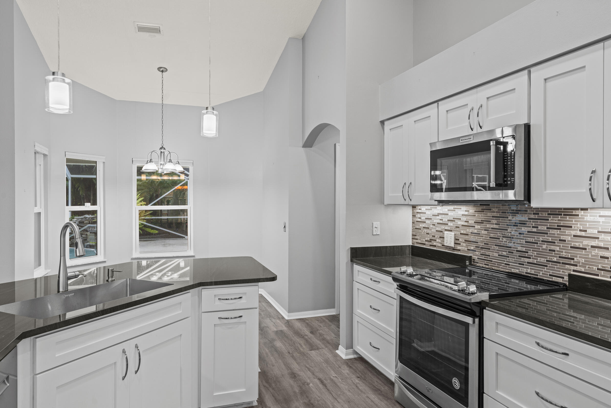 Picturesque pool home on an 1/2 Acre lot with Great Curb Appeal & plush landscaping in the desirable Torino neighborhood! This 3 BR's, 2 BA's home plus Den offers HURRICANE IMPACT windows and doors. Foyer entrance, vaulted ceilings & shows exceptional. Beautiful updated eat in kitchen includes new stainless steel appliances, pantry & granite counter tops. Details include updated gorgeous baths, new Vinyl & Tile flooring, NO carpet & NEW ROOF (2020). Enjoy both an attached oversized 2 car garage and a detached garage/workshop - perfect for storage, hobbies or a home office. Screen enclosed solar heated pool with a rock waterfall & spacious covered lanai offers the ultimate space for entertaining or relaxing. Auto sprinkler with well, NO HOA, A/C -2017 with UV light, Water Heater - 2023.