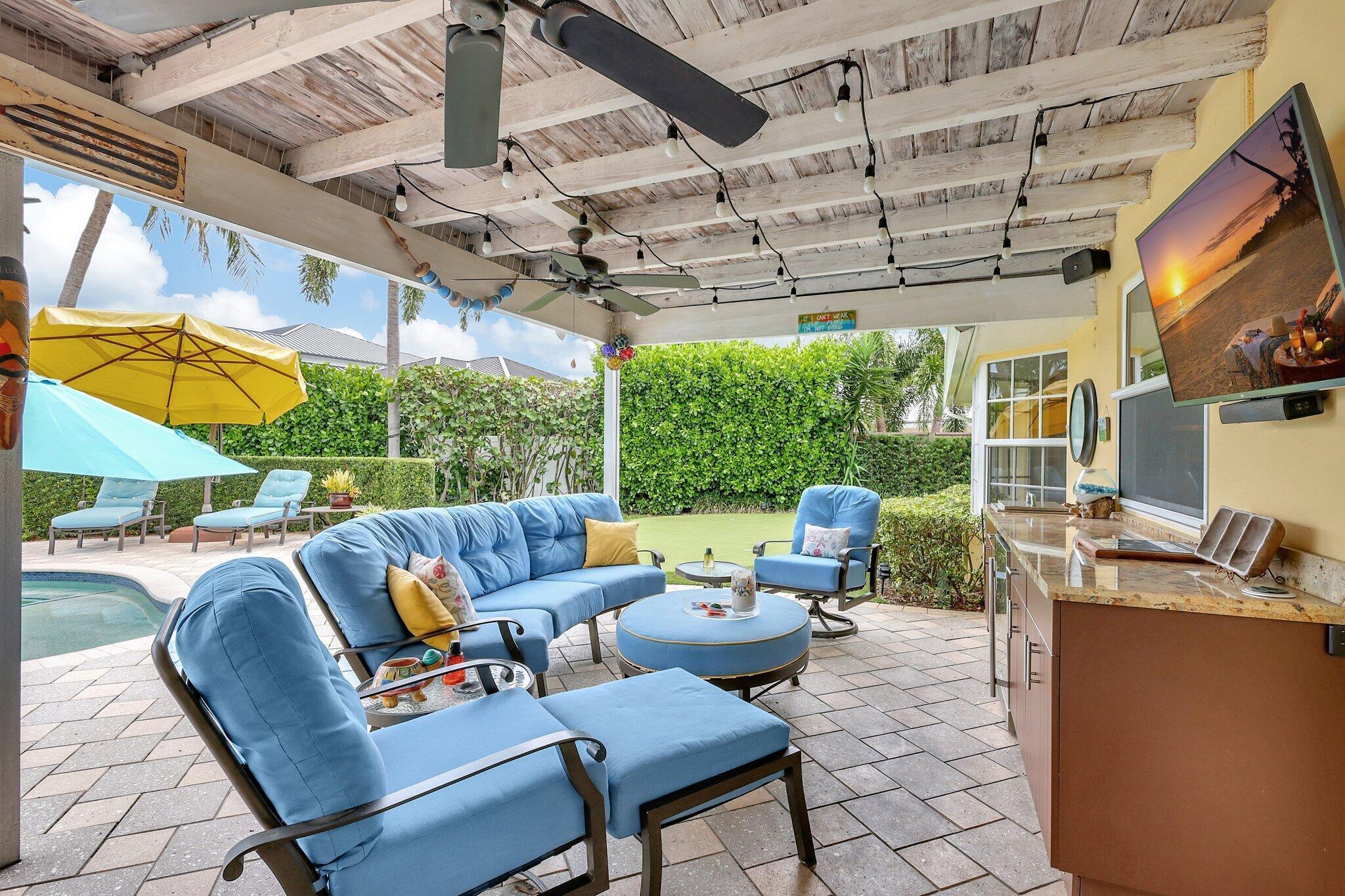 Covered Patio, Outdoor Shower, Shutters, Summer Kitchen, Zoned Sprinkler