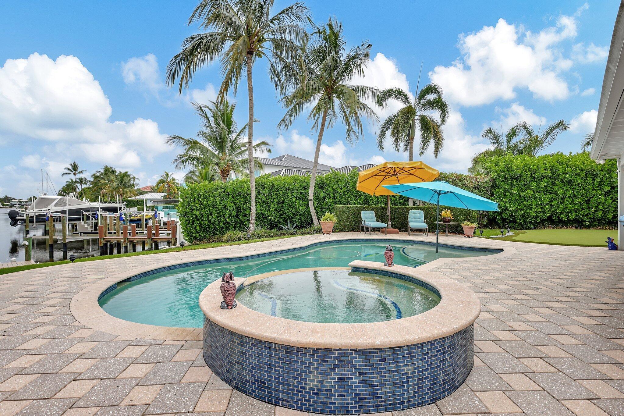 Welcome to 701 Waterway Drive--a stunning waterfront residence in the heart of the Village of North Palm Beach. This beautifully updated 3-bedroom, 2-bathroom home sits on an expansive .31-acre lot and offers direct water access with no fixed bridges, making it a true boater's paradise. Enjoy long canal views from one of the most desirable streets in the Village. Whether you're ready to move right in or envision building your dream home, the oversized lot provides endless potential. Inside, the home features a tastefully renovated kitchen with white cabinetry, granite countertops, and high-end appliances. Both bathrooms have been stylishly modernized for today's lifestyle.Additional upgrades include a new tankless water heater (2023), full hurricane protection, a 2015 roof, and a whole-house generatorensuring peace of mind and everyday comfort. Step outside into your private backyard oasis, perfect for entertaining or unwinding. Enjoy the sparkling pool and spa, outdoor kitchen, outdoor shower, putting green, and lush landscaping that creates a serene and private retreat. Picture yourself soaking in the hot tub this winter, drink in hand, while taking in those rare and expansive canal views that set this property apart. Located just minutes from world-class dining, shopping, golf, fishing, and only 20 minutes to Palm Beach International Airport, 701 Waterway Drive offers the ultimate South Florida lifestyle in a charming, boat-friendly community. Don't miss this rare opportunity to own a slice of paradise in North Palm Beach.