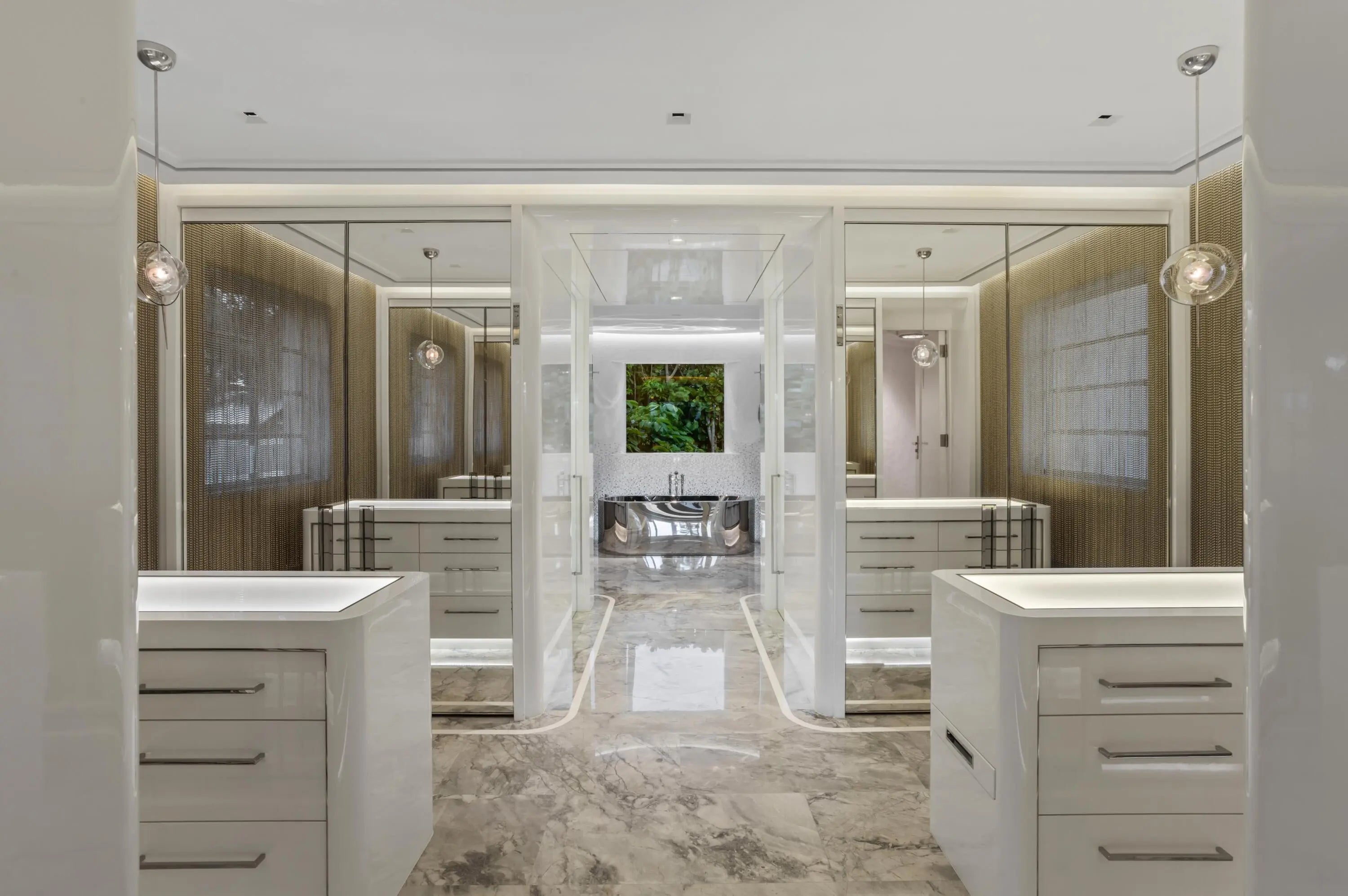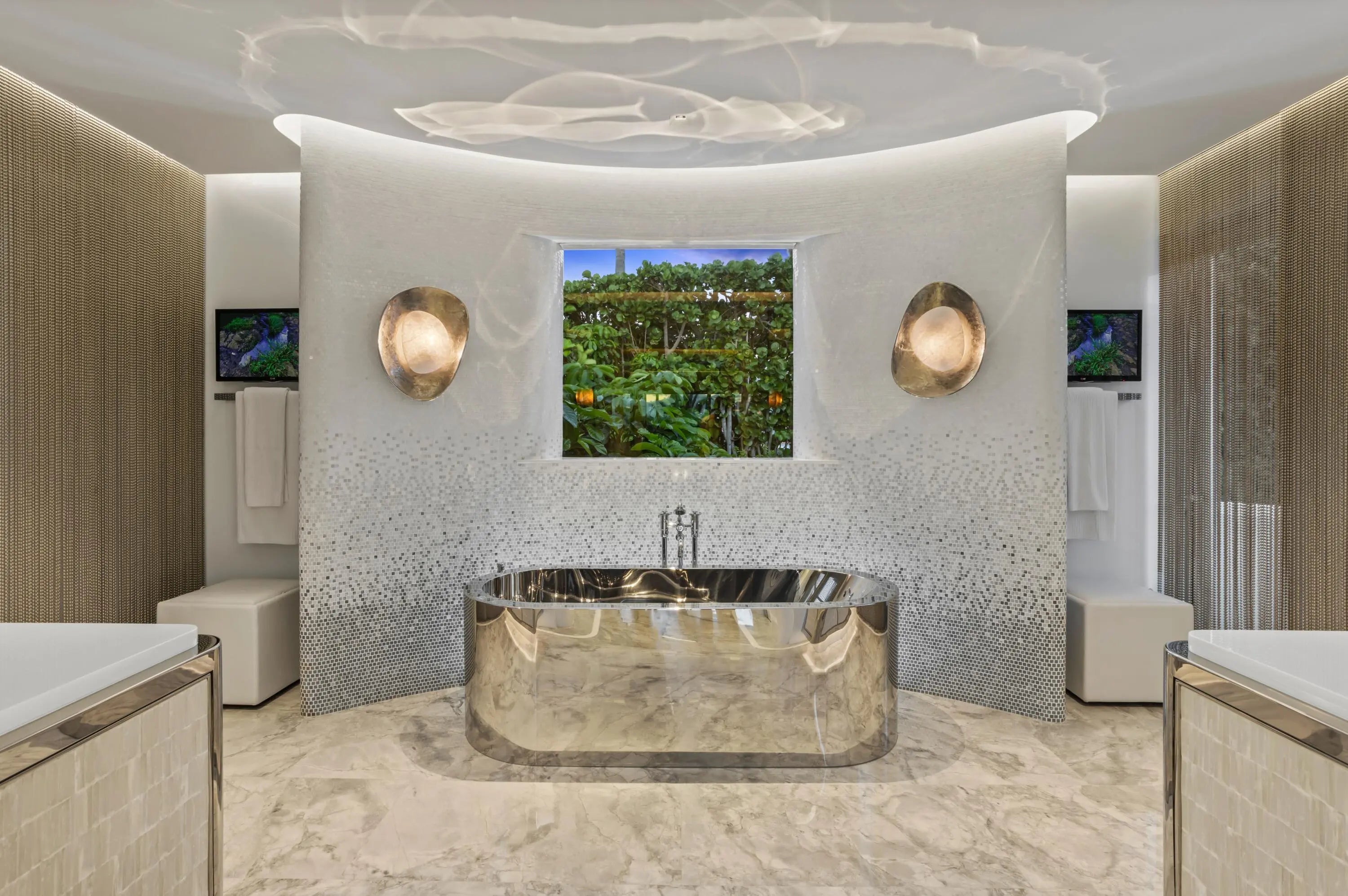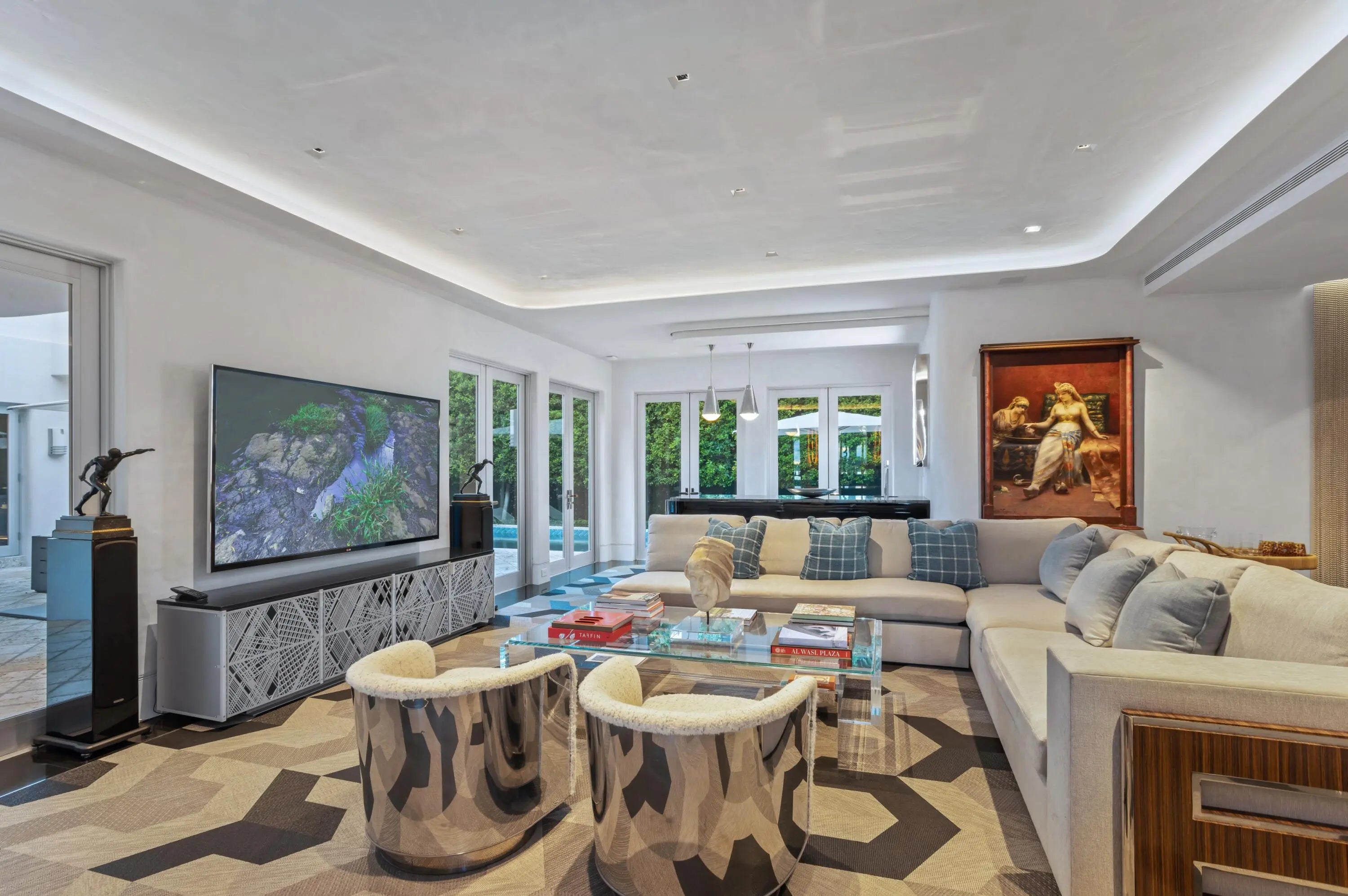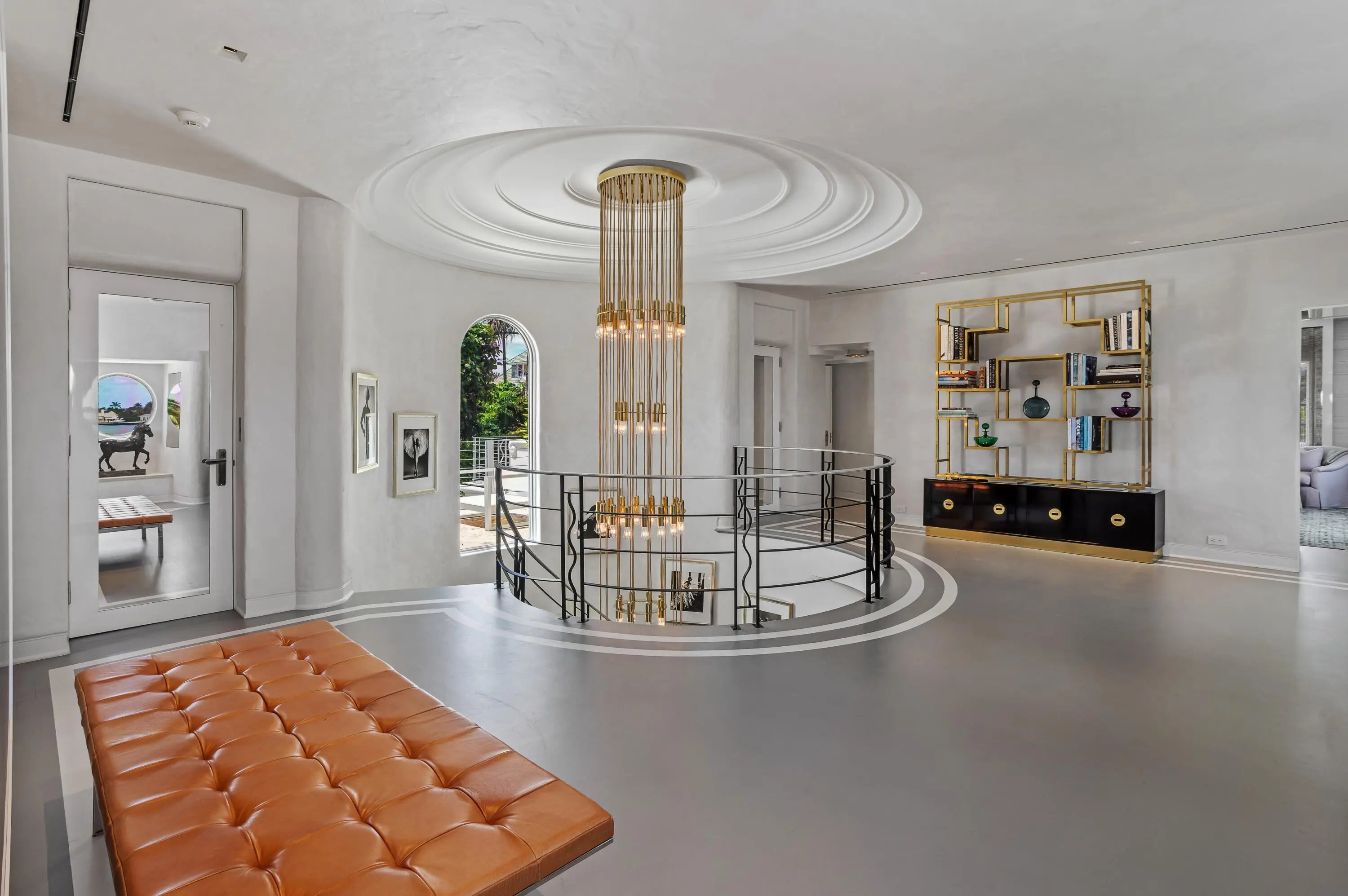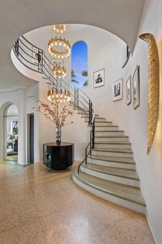 On the West Palm Beach waterfront this 1937 Belford Shoumate iconic architectural legacy beautifully bridges its nautical moderne heritage with today's modern luxury. Thoughtfully and comprehensively updated, the home retains its signature period details- including sea-foam green terrazzo floors, wavy ironwork banisters, a graceful circular staircase crowned by a domed ceiling frieze, and a curved fireplace-all blending historic artistry with contemporary sophistication. Steamship-inspired railings, a blue-tile-lined pool, and a scrolled stucco banister leading to a side entry complete the picturesque waterfront setting. Featuring 6 BR, 7.1 Ba, elevator, 3-car garage, and outdoor kitchen, this landmark property spans 23,836+/- SF of magnificence along the Intracoastal.