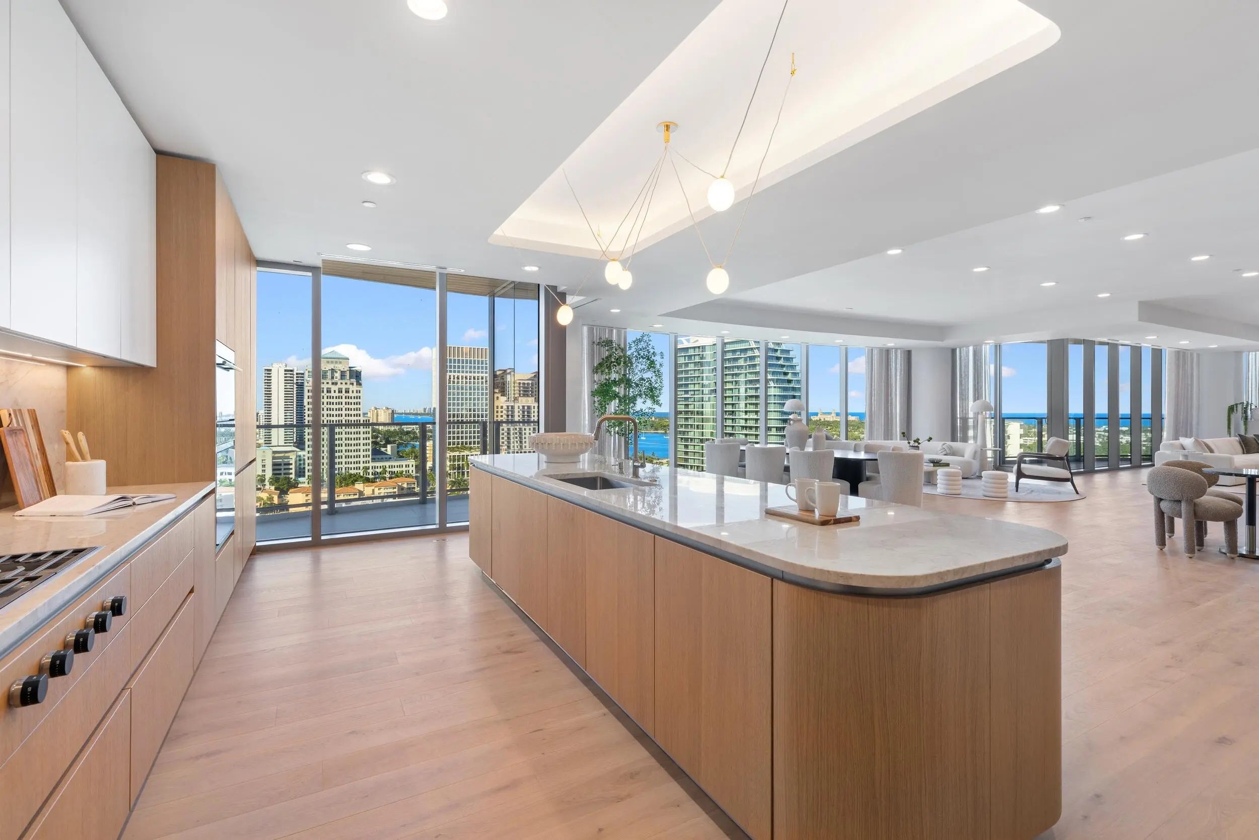 Beautiful brand new 4BR/4.1BA condominium with gorgeous Ocean, Intracoastal, and Palm Beach views. 5,400+/- total square feet of indoor and outdoor living. Private elevator foyer opens to fantastic open-concept great room. Gorgeous eat-in kitchen with chef's island. Living room features stunning water views and wet bar. Fabulous oversized terraces overlooking beautiful city views to the north and sweeping water views to the East. Waterfront Primary Suite with endless Ocean views, oversized bath, and dual walk-in closets. The iconic new Forte on Flagler building features three full floors of opulent amenities. Fantastic downtown location just blocks from CityPlace, Palm Beach Island, and so many shops and restaurants.