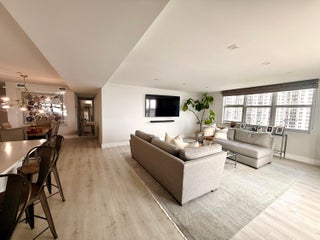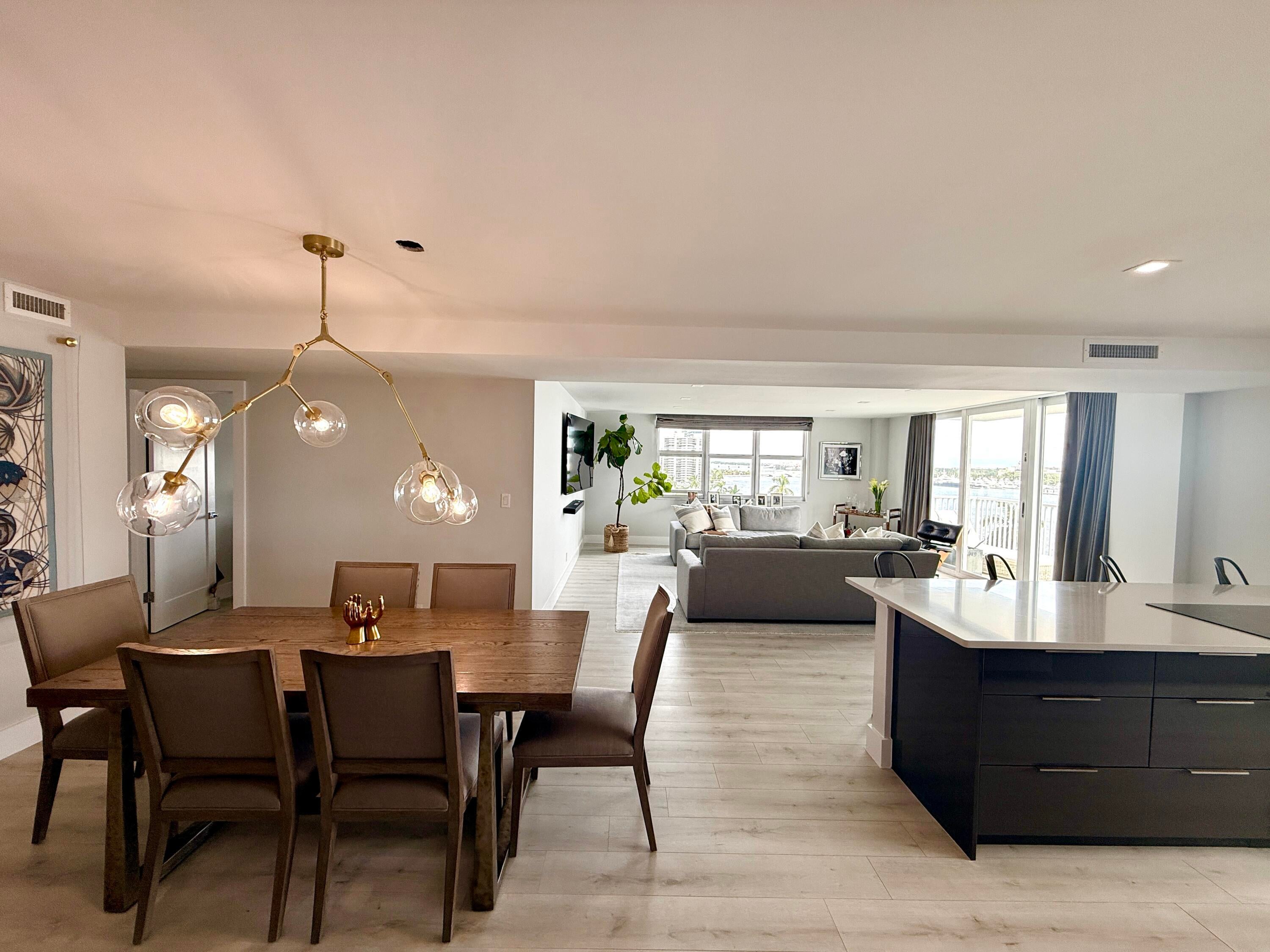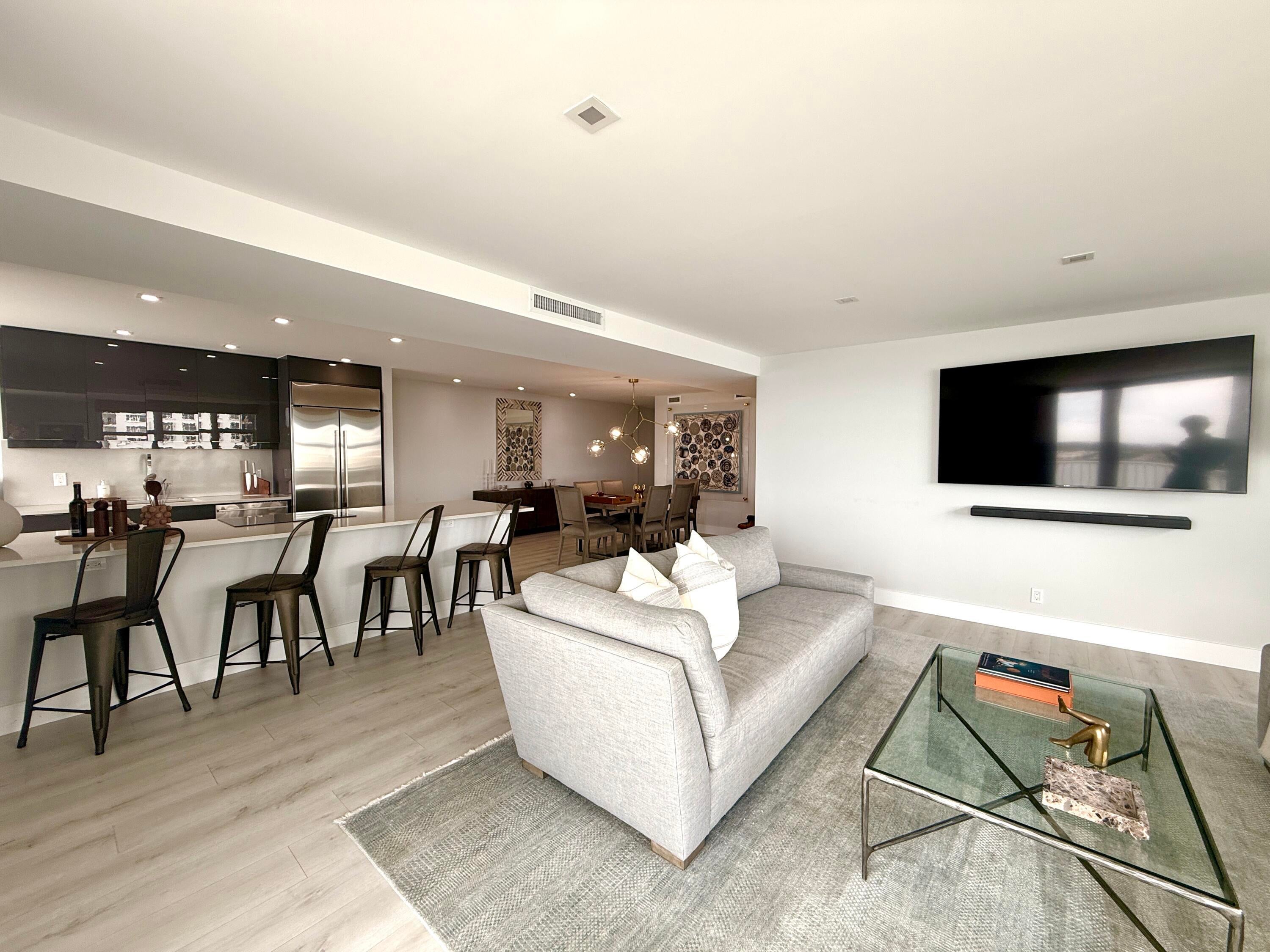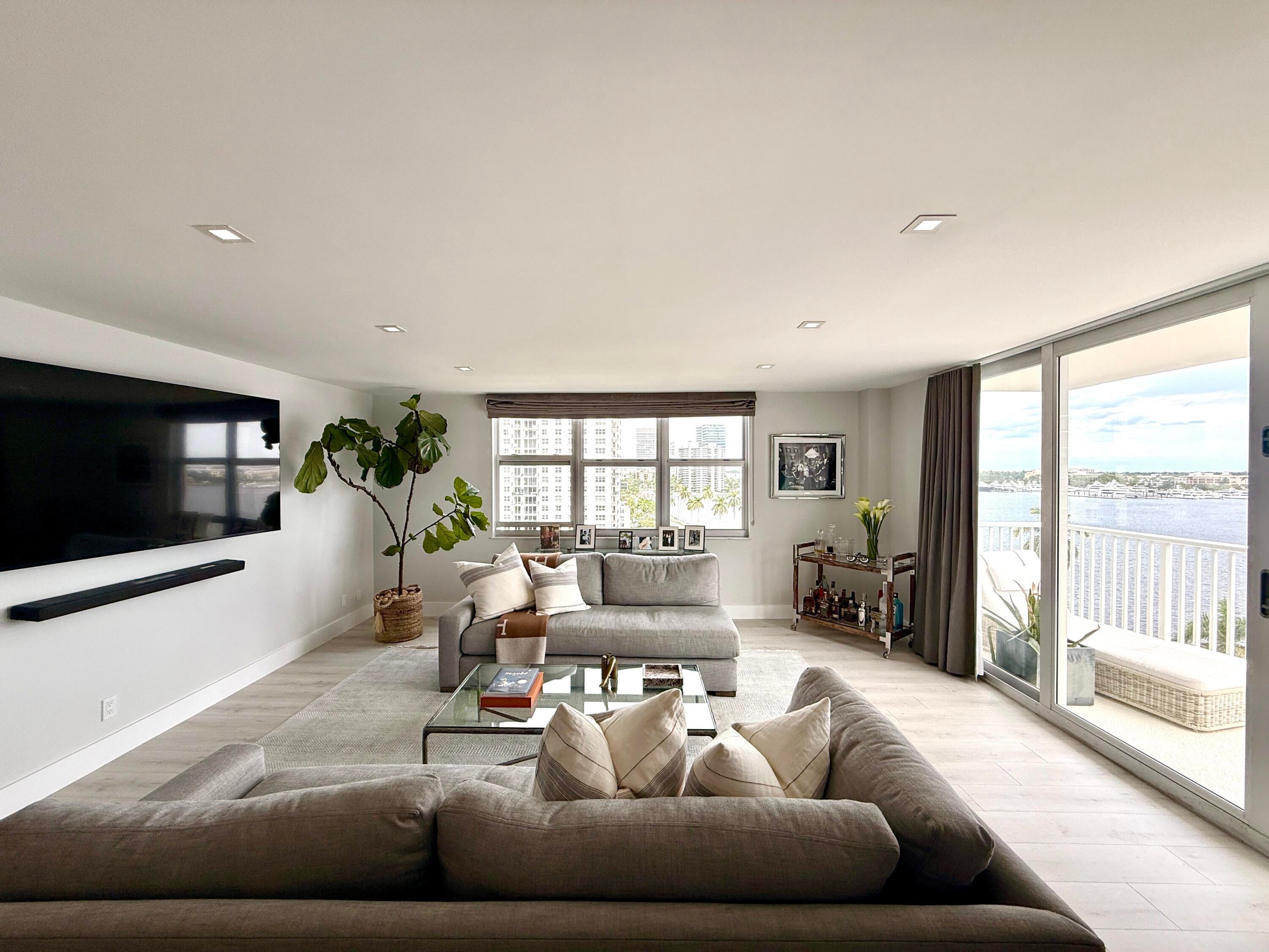 Indulge in panoramic intracoastal views from this rarely available, elegantly redesigned condo near downtown West Palm Beach. This 3-bedroom, 2-bath residence showcases a sophisticated open layout, a chef's kitchen with custom island, designer finishes, and exquisite flooring throughout. Floor-to-ceiling impact windows invite endless natural light and breathtaking vistas. The primary suite features a a generous walk-in closet and a contemporary en-suite bathroom with an oversized walk-in shower. Perfect as a primary home or seasonal retreat, this residence offers effortless access to upscale dining, shopping, and the vibrant Palm Beach lifestyle.
