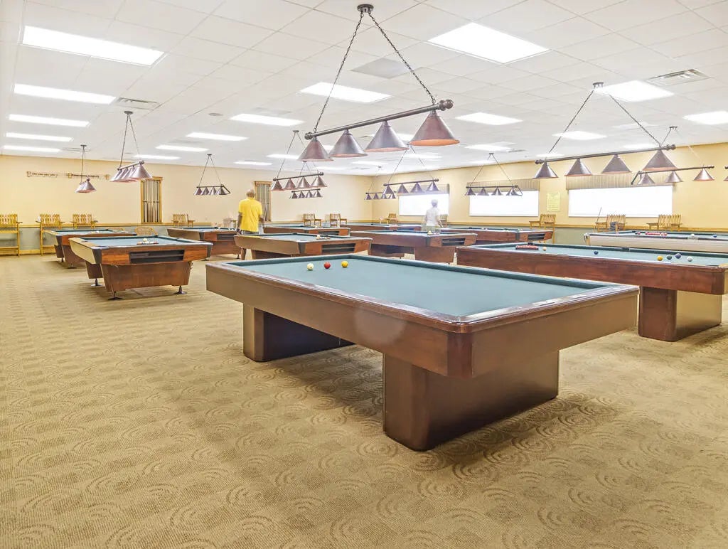 Billiards, Boating, Bocce Ball, Clubhouse, Common Laundry, Community Room, Courtesy Bus, Fitness Center, Indoor Pool, Library, Pickleball, Pool, Sauna, Shuffleboard, Tennis, Workshop