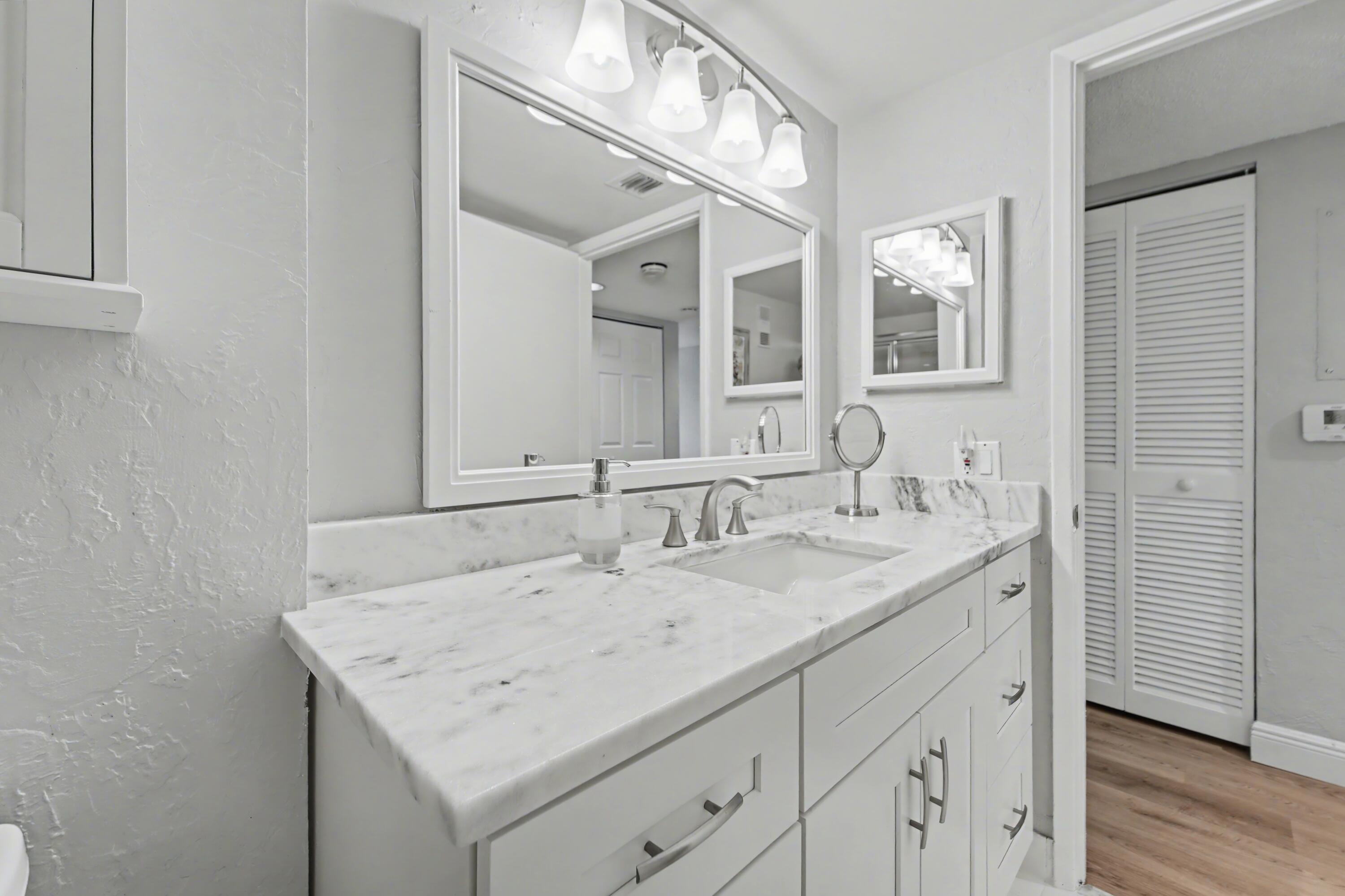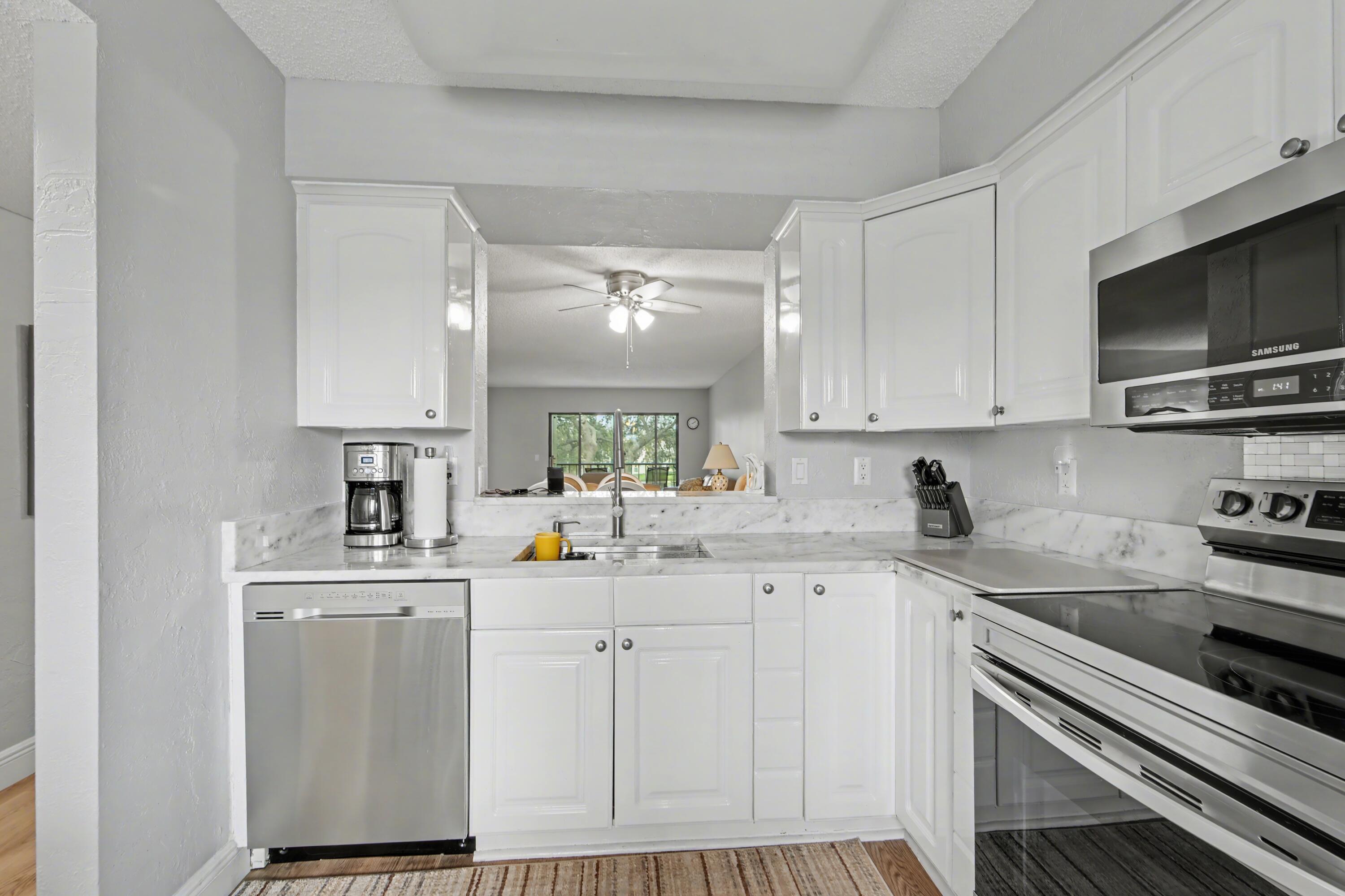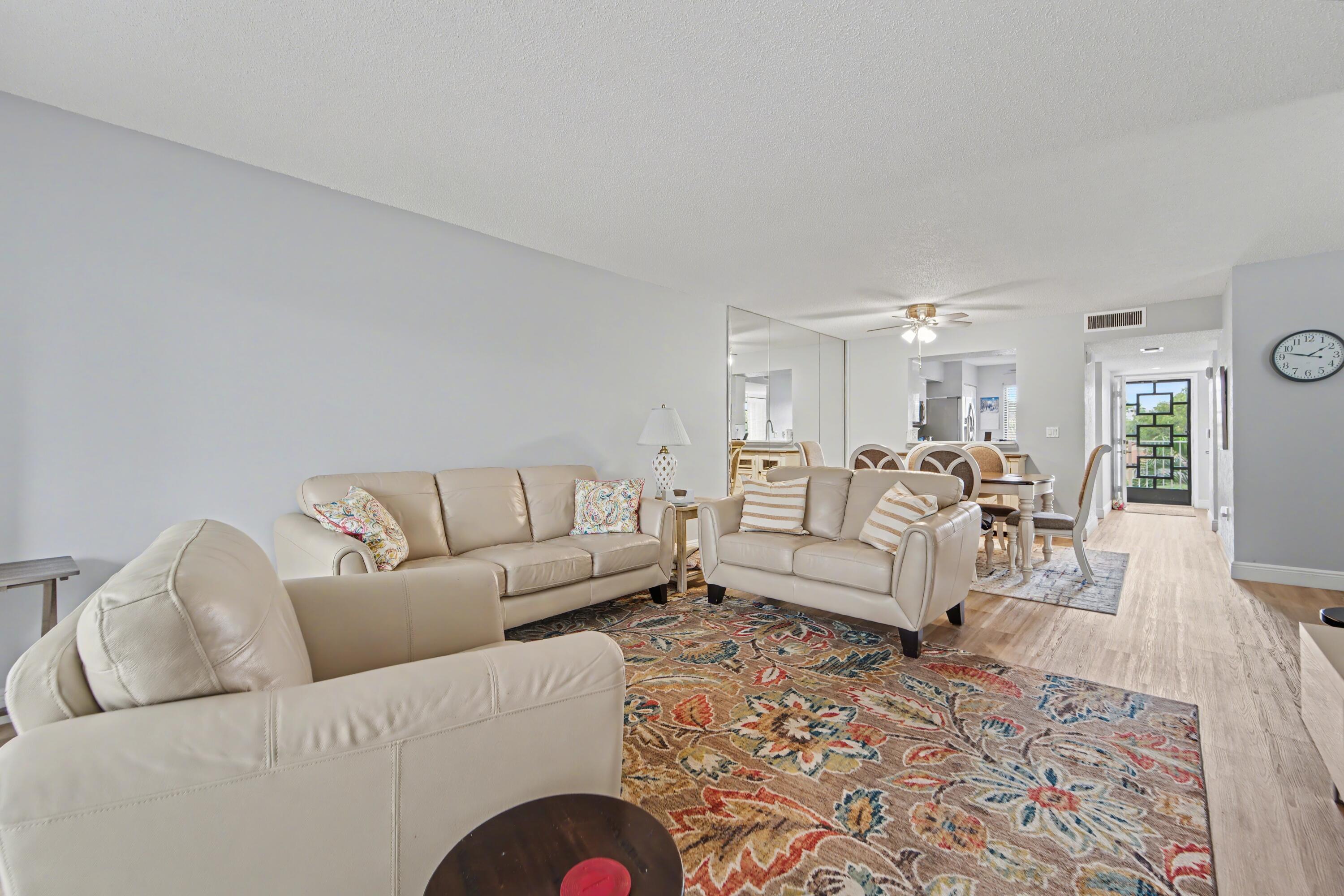 This beautifully updated unit is move-in ready. 2/2 condo with den that's also perfect as an office or guest room. Granite counters, wood cabinets in kitchen. Easy to maintain, high grade wood laminate floors. Fully enclosed, air conditioned lanai with lake view. Oversized California-style walk-in closet in primary br, walk-in shower in en-suite primary bath. Indoor laundry room with full sized washer and dryer. Covered parking spot #67. Impact windows. New roof 2025. Huntington Pointe is an active adult community that features a 53,000 square foot clubhouse. The 600 seat theater offers live entertainment and movies year 'round. Plus a fitness center, card rooms, billiard room, aerobics room, aerobics room, bocce courts, pickleball courts, Har-Tru tennis courts (coming in 2026), 4 outdoor4 outdoor pools, heated indoor pool, numerous clubs and organized activities, and a cafe that's open for breakfast and lunch every day.