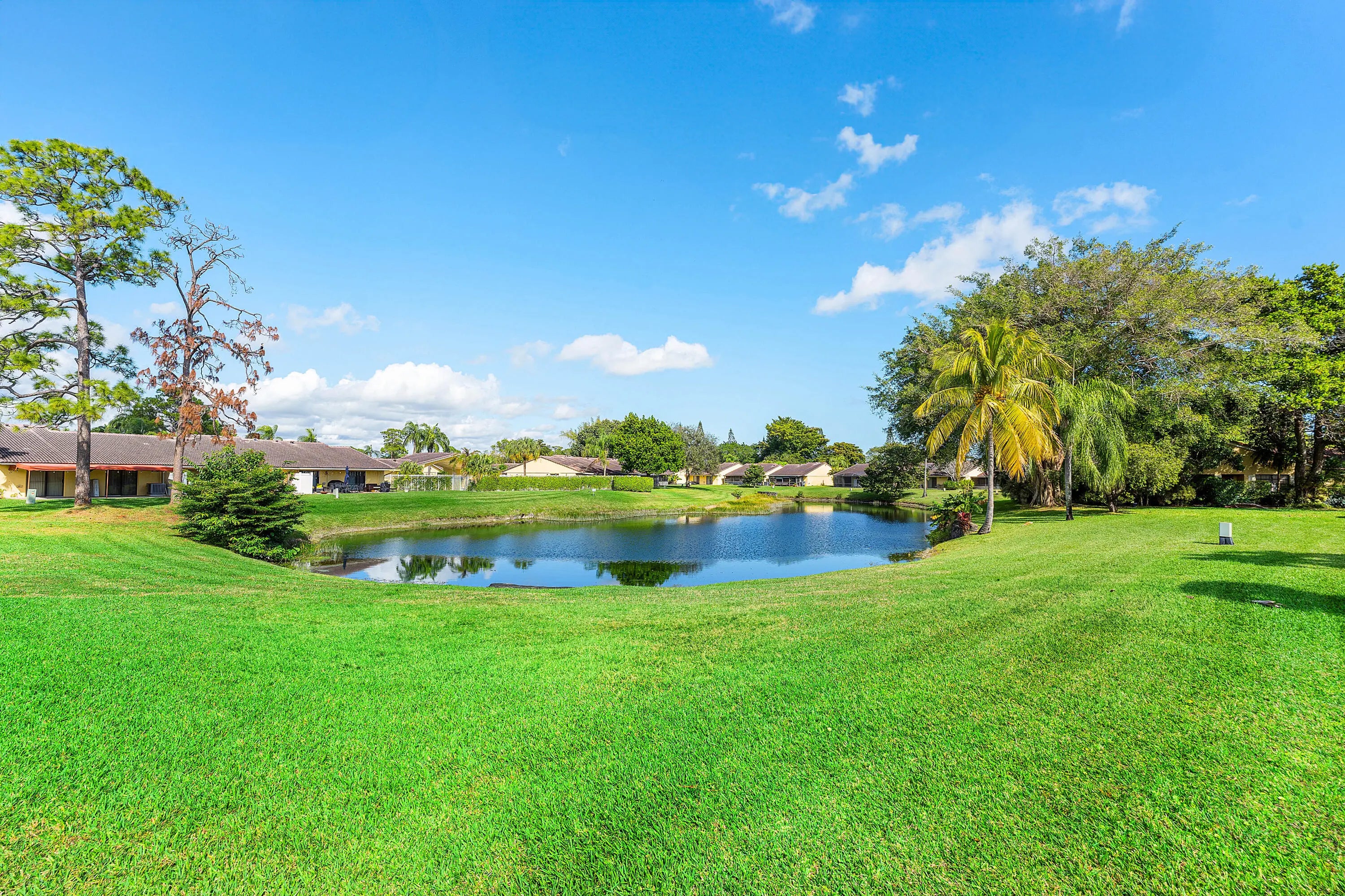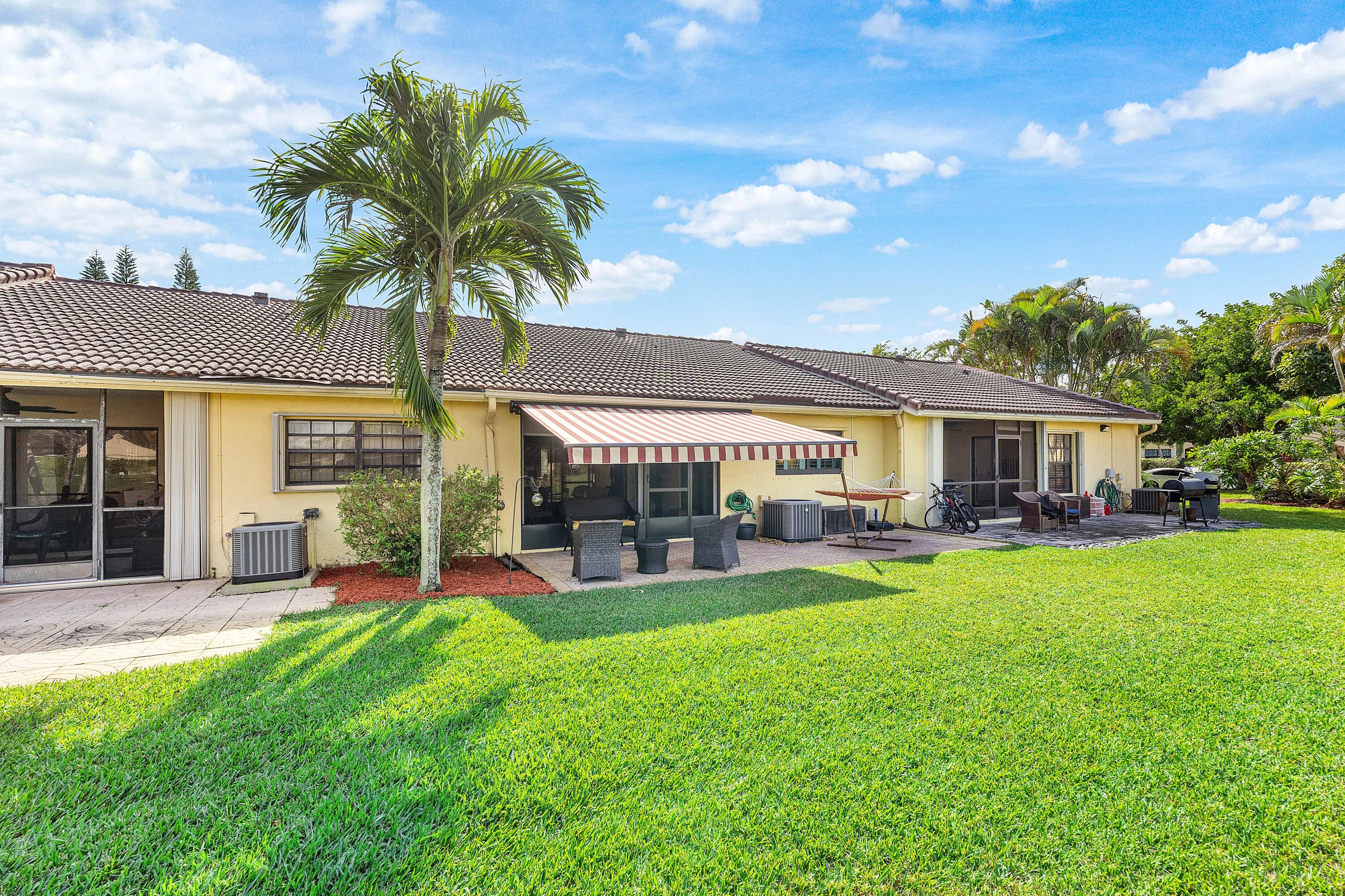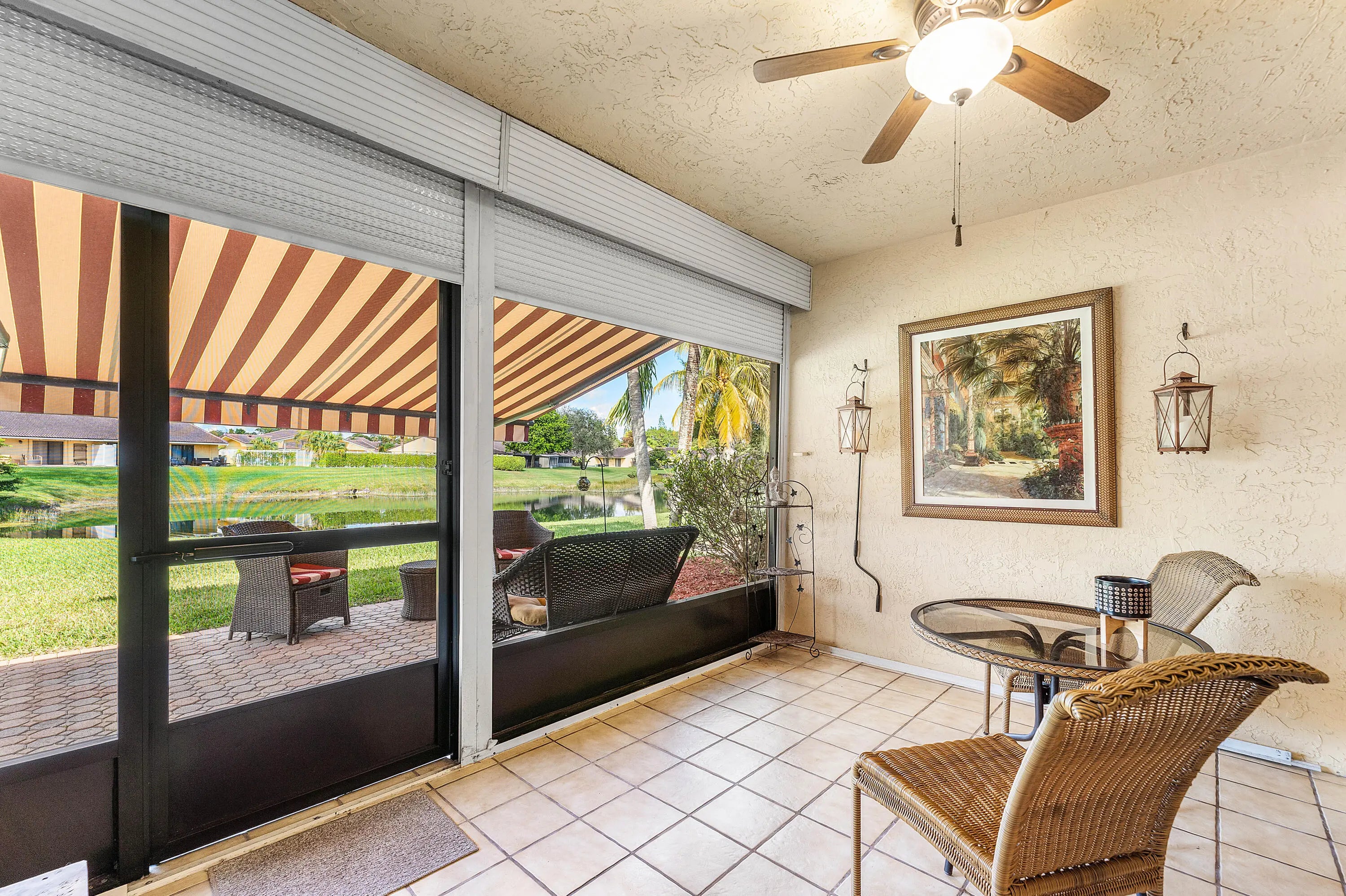 Wake up to tranquil lake views in this fully renovated, whisper-quiet villa designed for effortless South Florida living. Vaulted ceilings and impact windows create a bright, open feel throughout. Updates include a new roof, upgraded electrical panel, designer kitchen and baths, and new ceramic tile and luxury vinyl flooring--making this home truly move-in ready. Enjoy indoor-outdoor living from the screened porch to a private patio with retractable awning overlooking serene water views. Located in an A-rated school district for all three levels. Thornhill HOA offers low-maintenance living with cable, internet, exterior insurance, landscaping, and pool included. Walk to the YMCA, Publix, new Aldi, and houses of worship. Furniture negotiable; low-down-payment financing allowed.