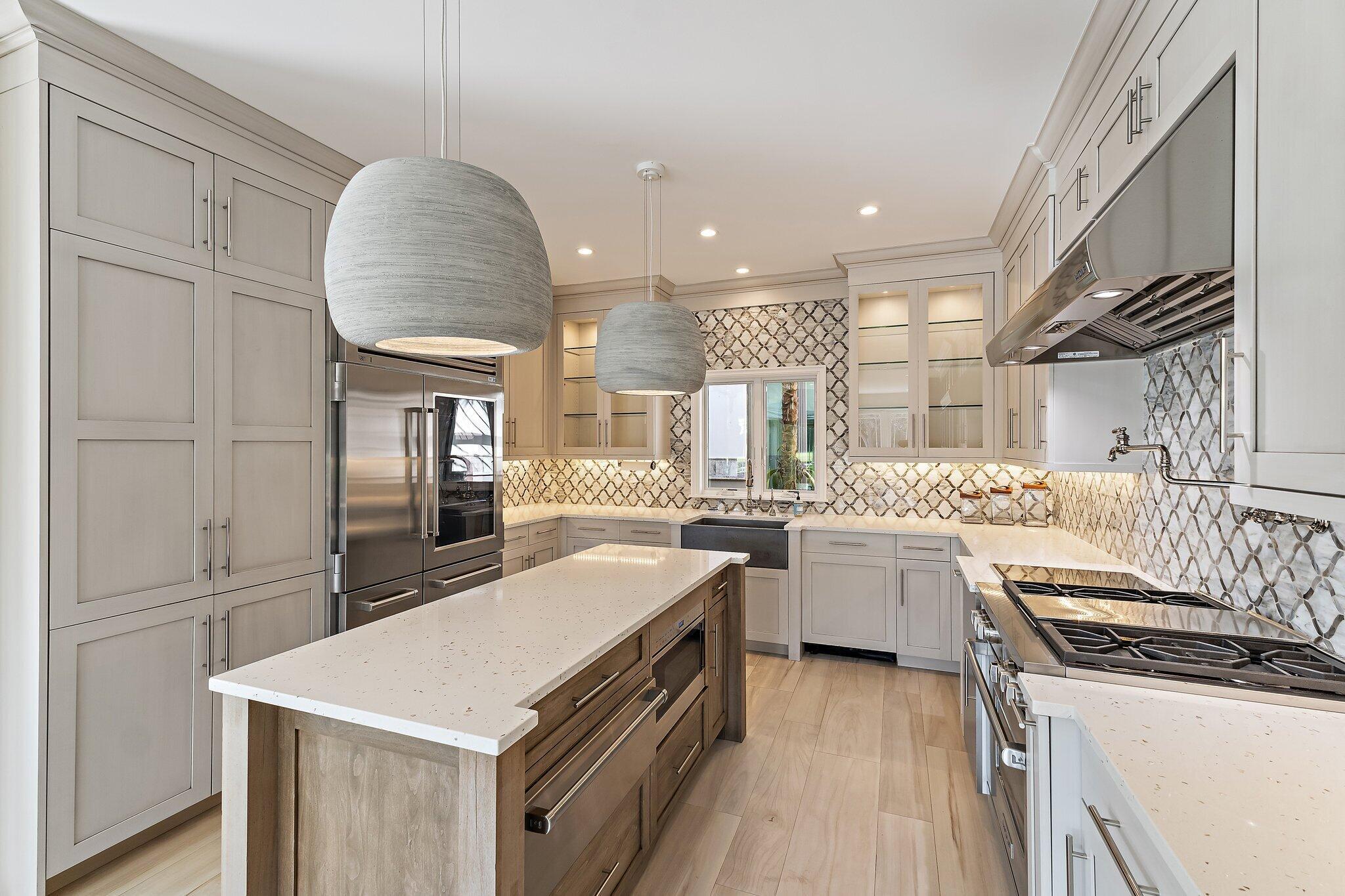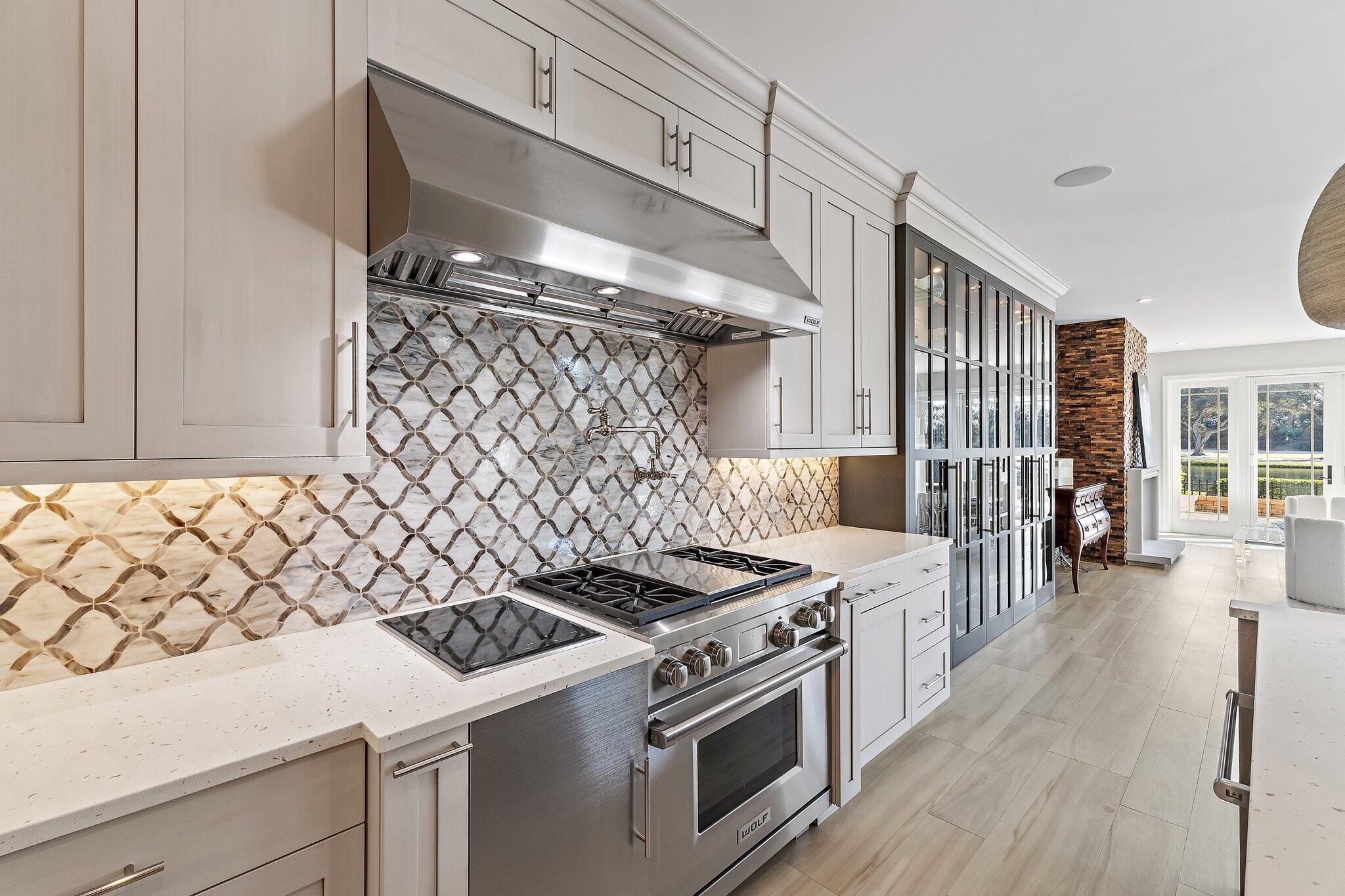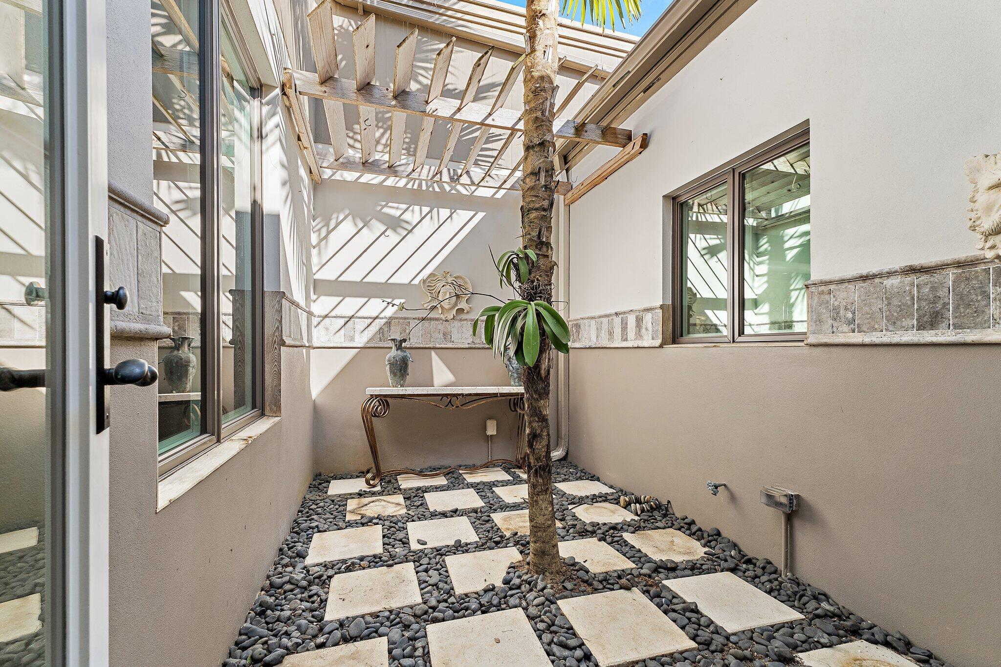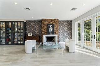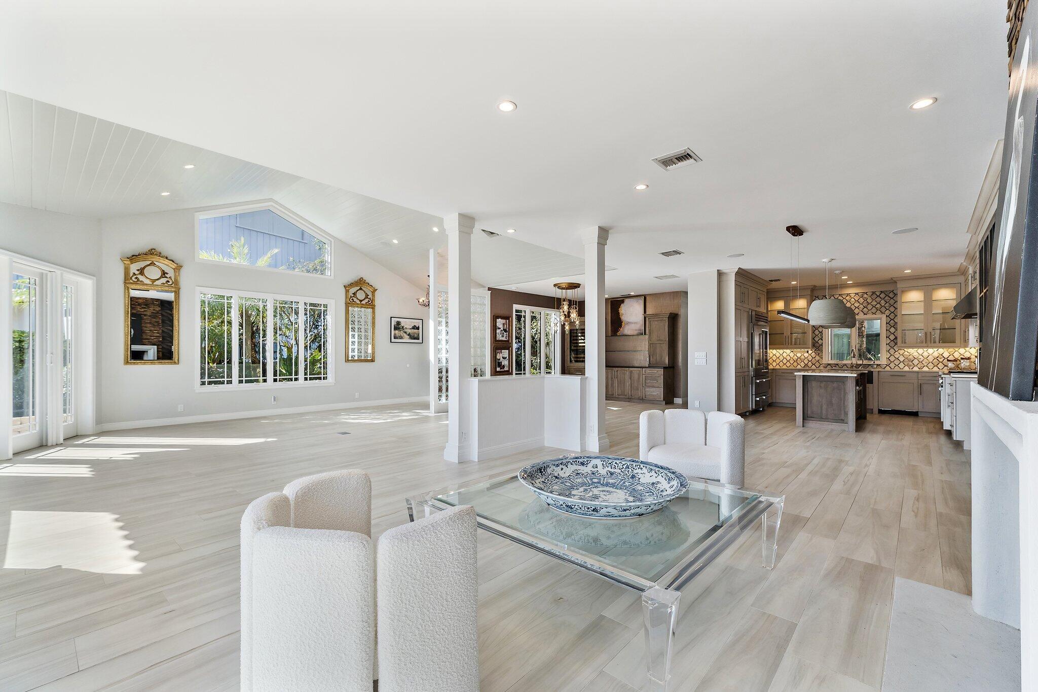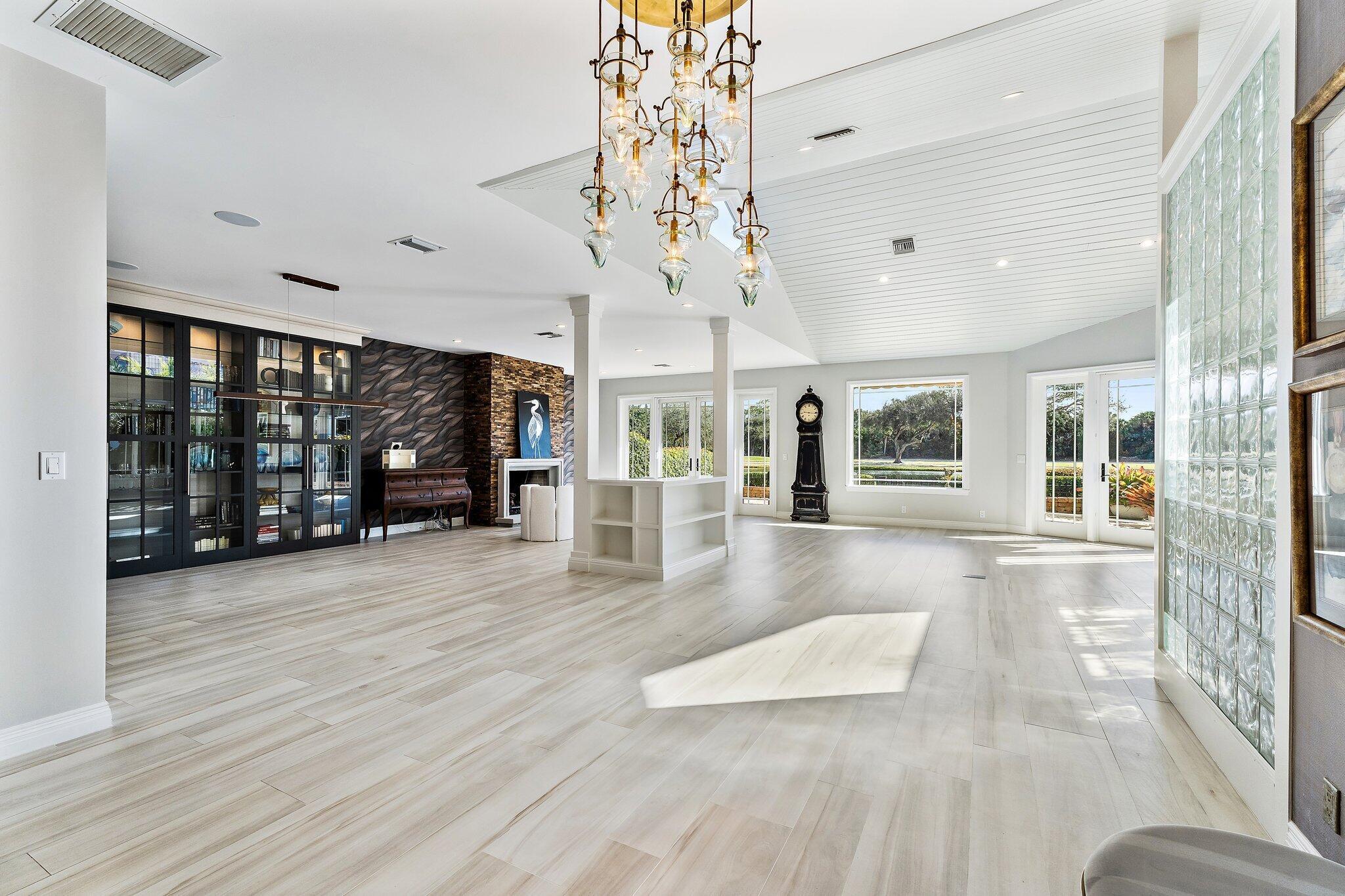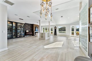 Amazing natural light and killer views at this new to market home in Jupiter Hills Village. Enter along a tropical path of unique plantings and inviting landscape design. Once inside the open floor plan, offers maximum options for your unique life style. The large great room offers a fireplace and built in cabinetry. An entertainment wall with wine cooler, ice maker, refrigerator draws and shelves, will make entertaining a breeze. Impact rated windows and doors open to the view, past a lovely and inviting patio. Water, golf and legacy trees frame the scene, from early morning sunlight to amazing sun sets. Serene views, curated outdoor gardens and well-planned spaces combine to make this a special one to consider.A chef's kitchen with high end appliances including a Wolf gas stove, bread warmer, additional cook top and custom cabinetry will delight a gourmet chef or the casual dinner warrior. The primary suite offers two walk in closets, double vanities and private shower. Freshly painted with new carpet, this room is the definition of privacy and serenity. Two additional guest rooms, a large laundry room with additional storage, make this home a special gathering place.