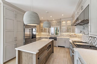 Bar, Built-in Shelves, Fireplace(s), French Door, Cook Island, Volume Ceiling, Walk-in Closet