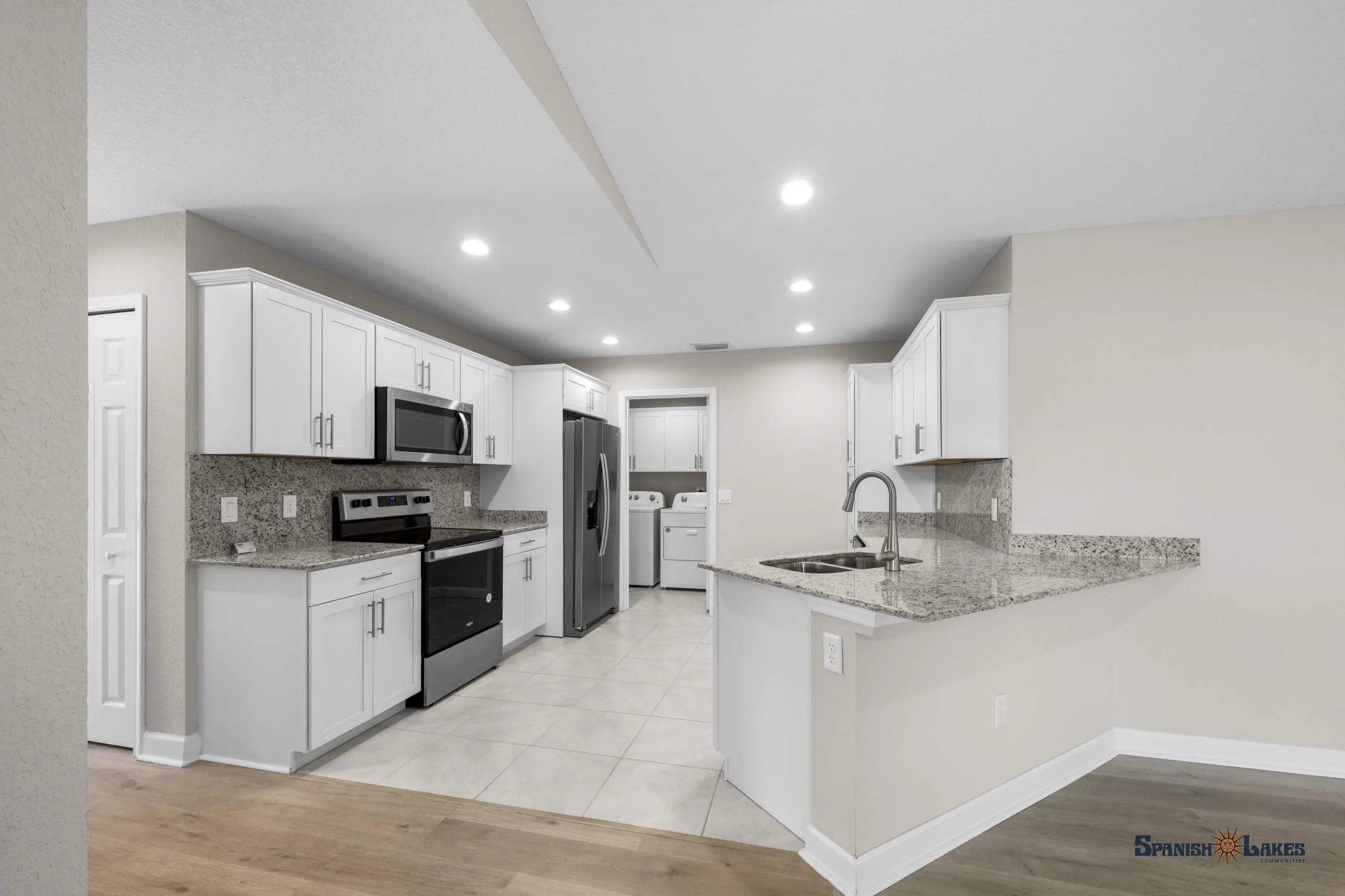 Discover true Florida living in the 2-bedroom, 2-bath Carlton model featuring a spacious layout, soaring vaulted ceilings, a covered front porch, and attached garage. Built with solid concrete block, this home boasts quartz counters, stainless steel appliances, and elegant finishes. The split-bedroom design ensures privacy while the open living area flows perfectly for entertaining. This move-in-ready home was built with 3/16th true plywood roof sheathing, hurricane tie straps, R-30 insulation, and hip roof designs ensuring big insurance premium discounts. Our homes also come equipped with energy efficient appliances, keypad door locks, and a continuous quartz kitchen backsplash. Guaranteed Fixed long term land lease: $599/month for 99 years.